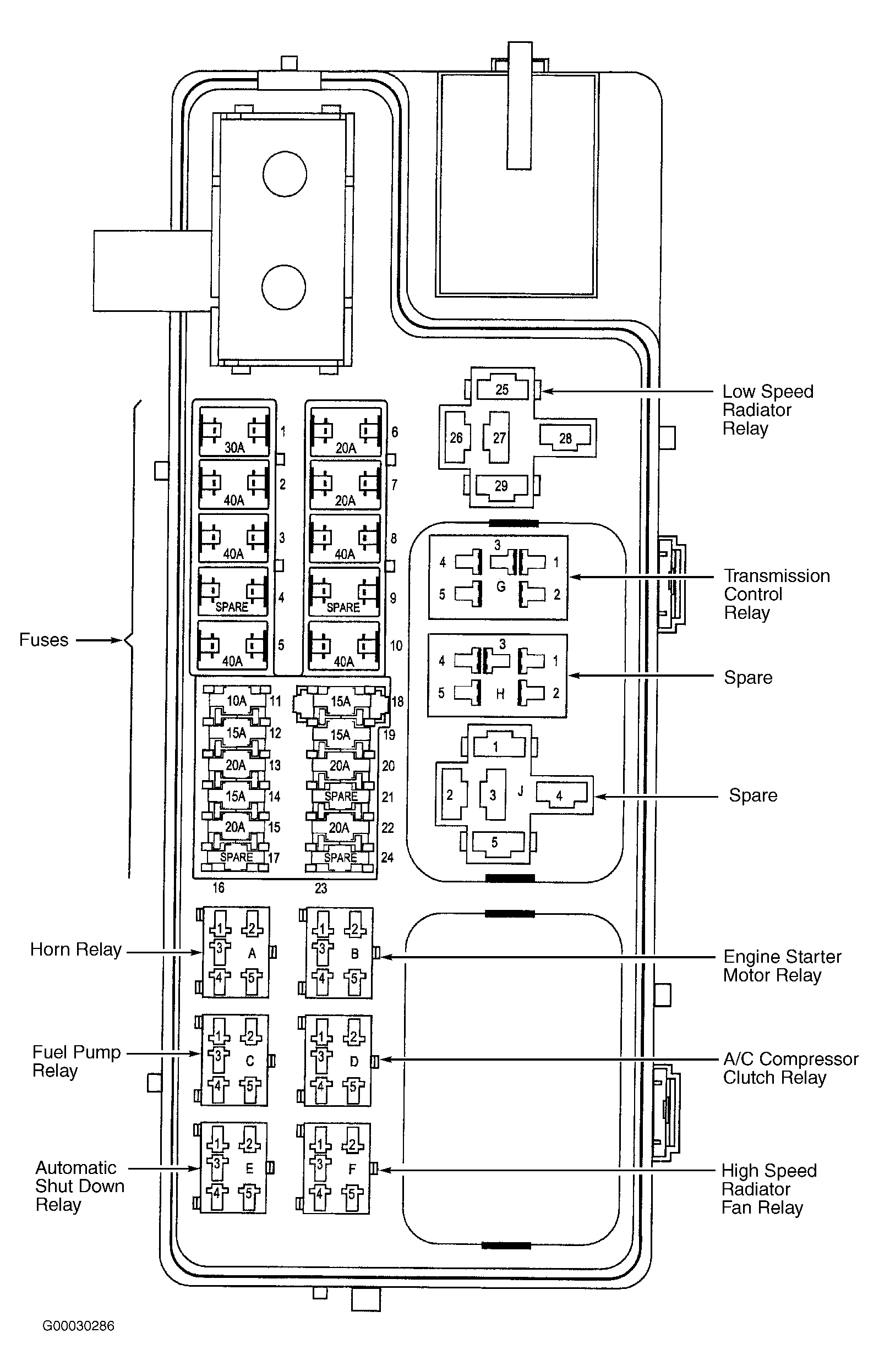 - Turn ignition off. Remove fuel pump relay from Power Distribution Center (PDC). PDC is located in left rear of engine compartment. See Fig 1 .