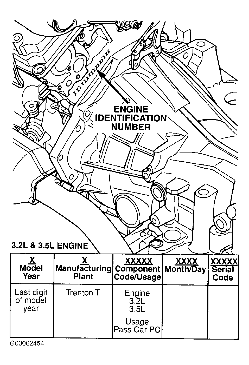 The engine identification number is located on rear of engine block just below cylinder head. See Figure.
