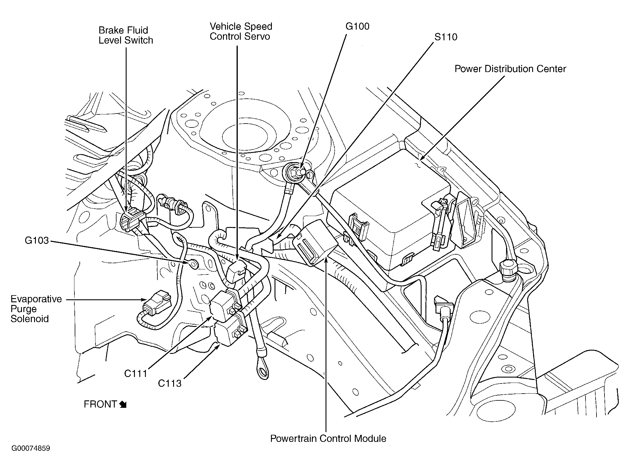 | Powertrain Control Module | Between air cleaner housing & power distribution center. See Figure . |