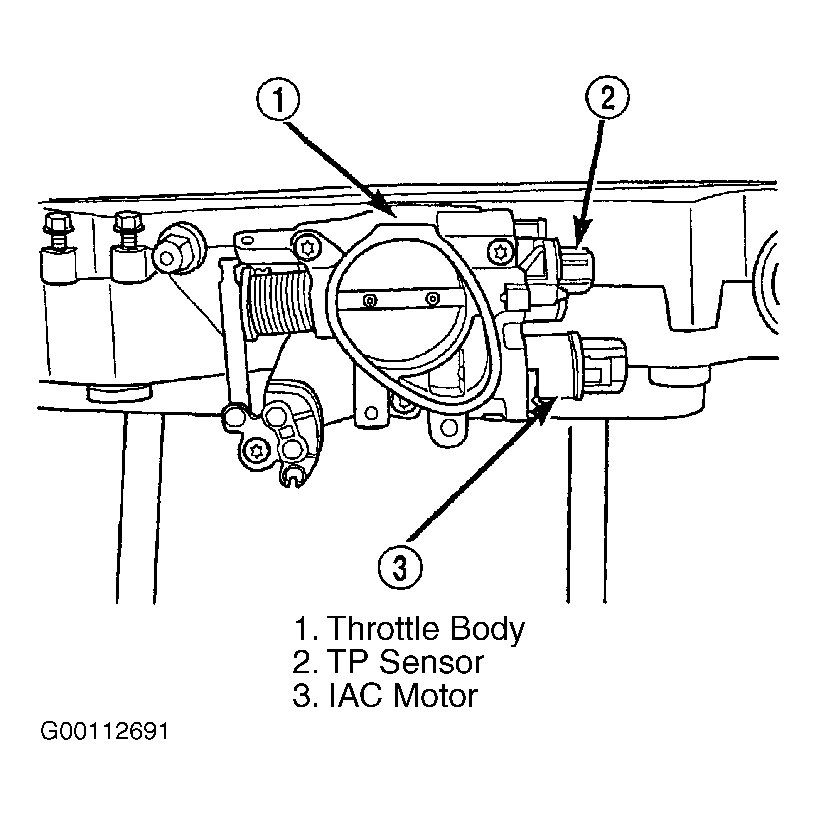 Fig 2: Locating IAC Motor, Throttle Body & TP Sensor (3.5L)