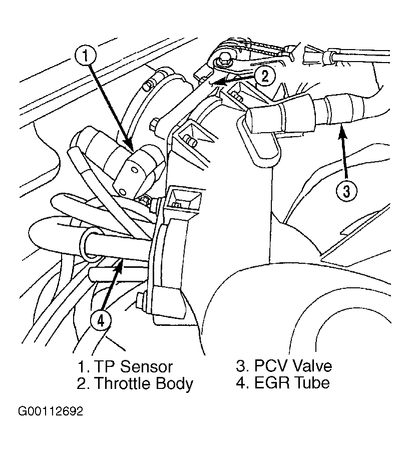 Fig 1: Locating EGR Tube, Throttle Body, TP Sensor & PCV Valve (2.7L)