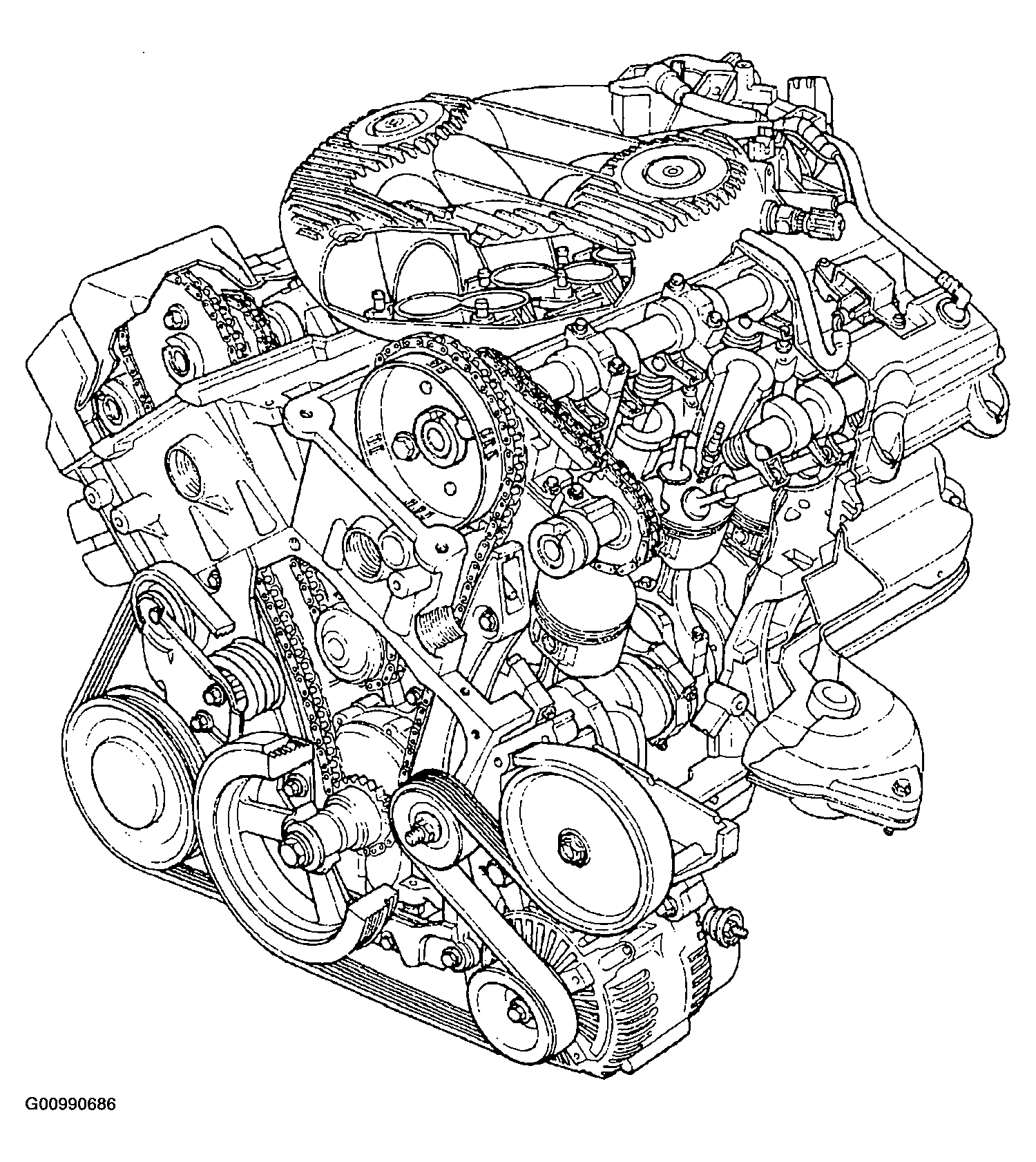 The 2.7 Liter (167 Cubic Inches) 60 degree V-6 engine is a double overhead camshaft design with hydraulic lifters and four valves per cylinder (Fig 1). The engine does not have provisions for a free wheeling valve train.