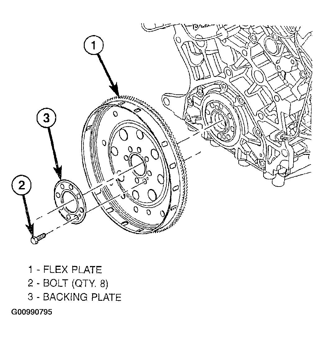 - Position flex plate with backing plate on the crankshaft (Figure).