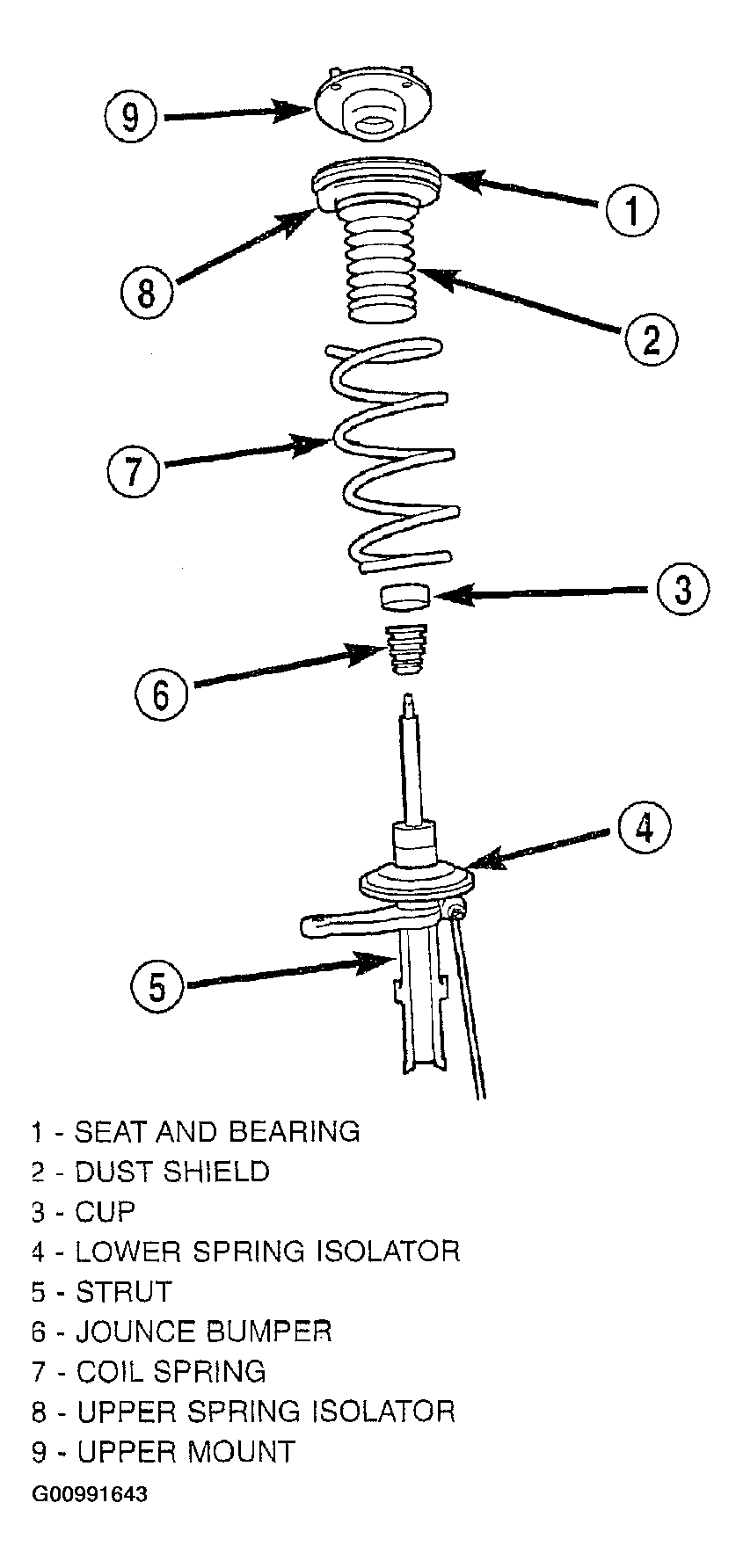 The components of the strut assembly listed below are serviceable if found to be defective (Fig 1):