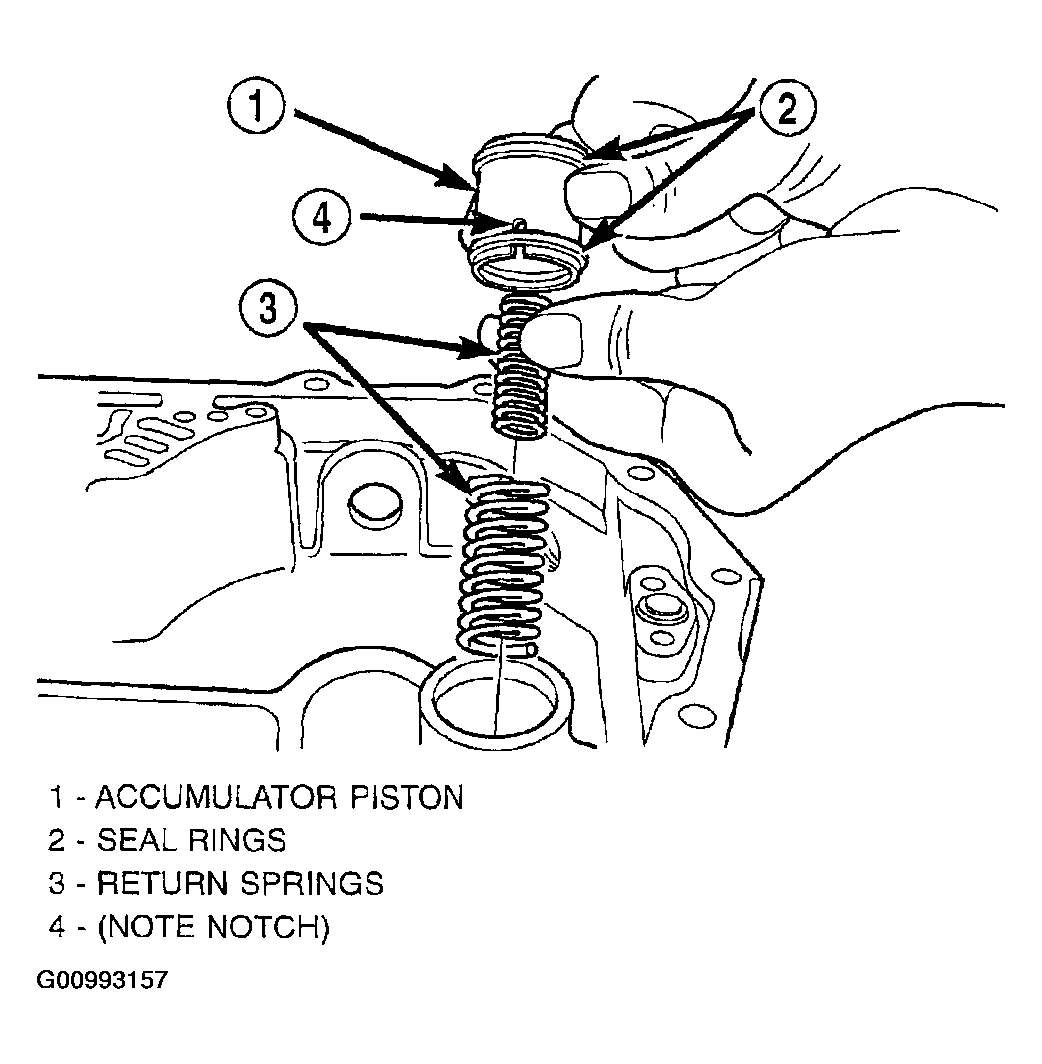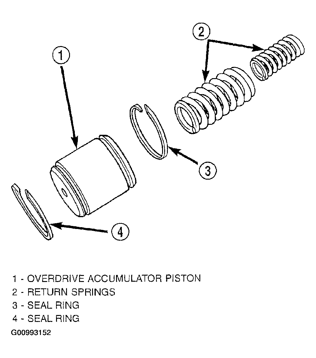 CAUTION: Tag the springs for the Overdrive Accumulator so that they are not confused with the springs in the Low/Reverse Accumulator.