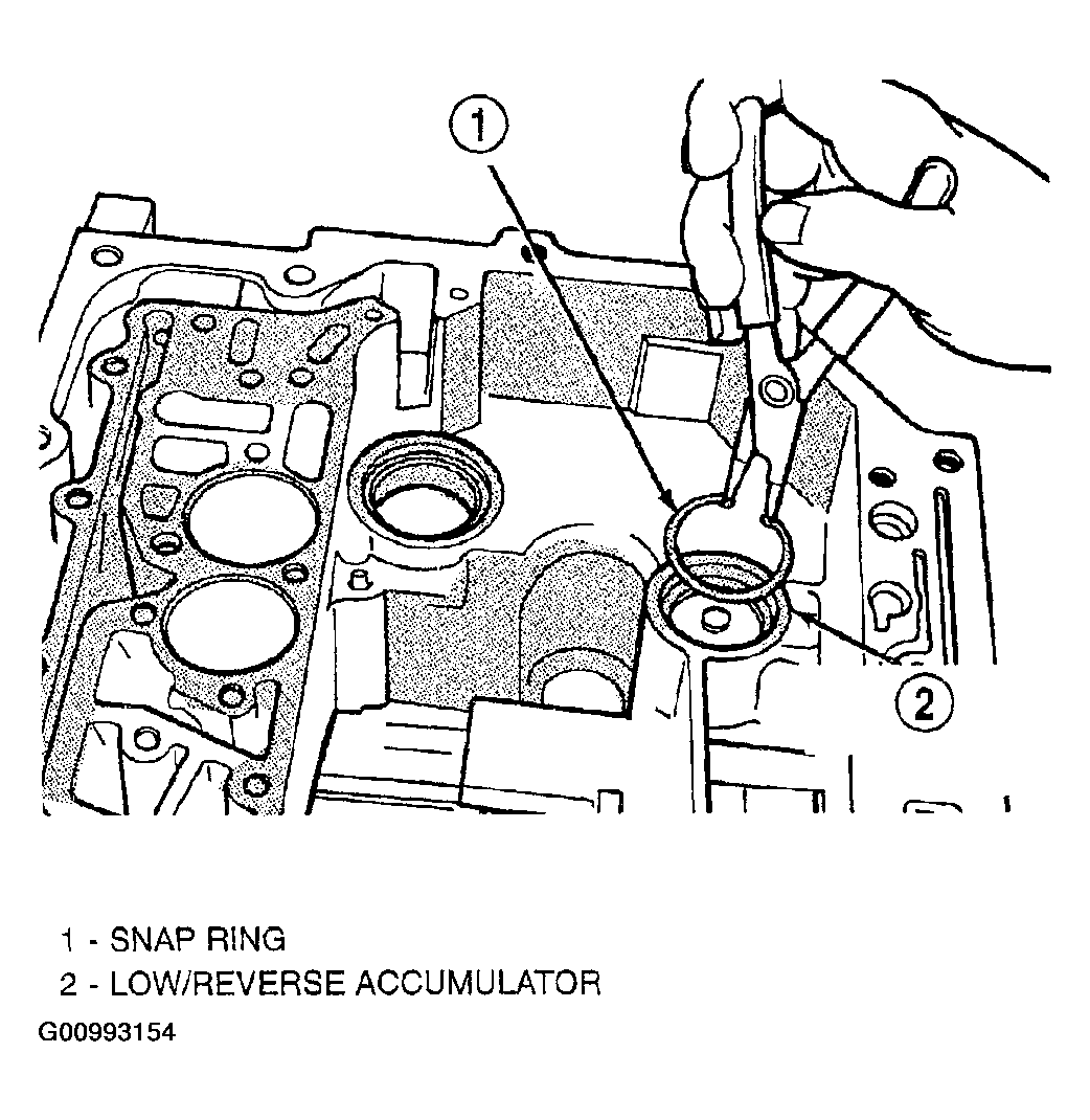 - Remove the low/reverse accumulator snap ring. See Fig 10.