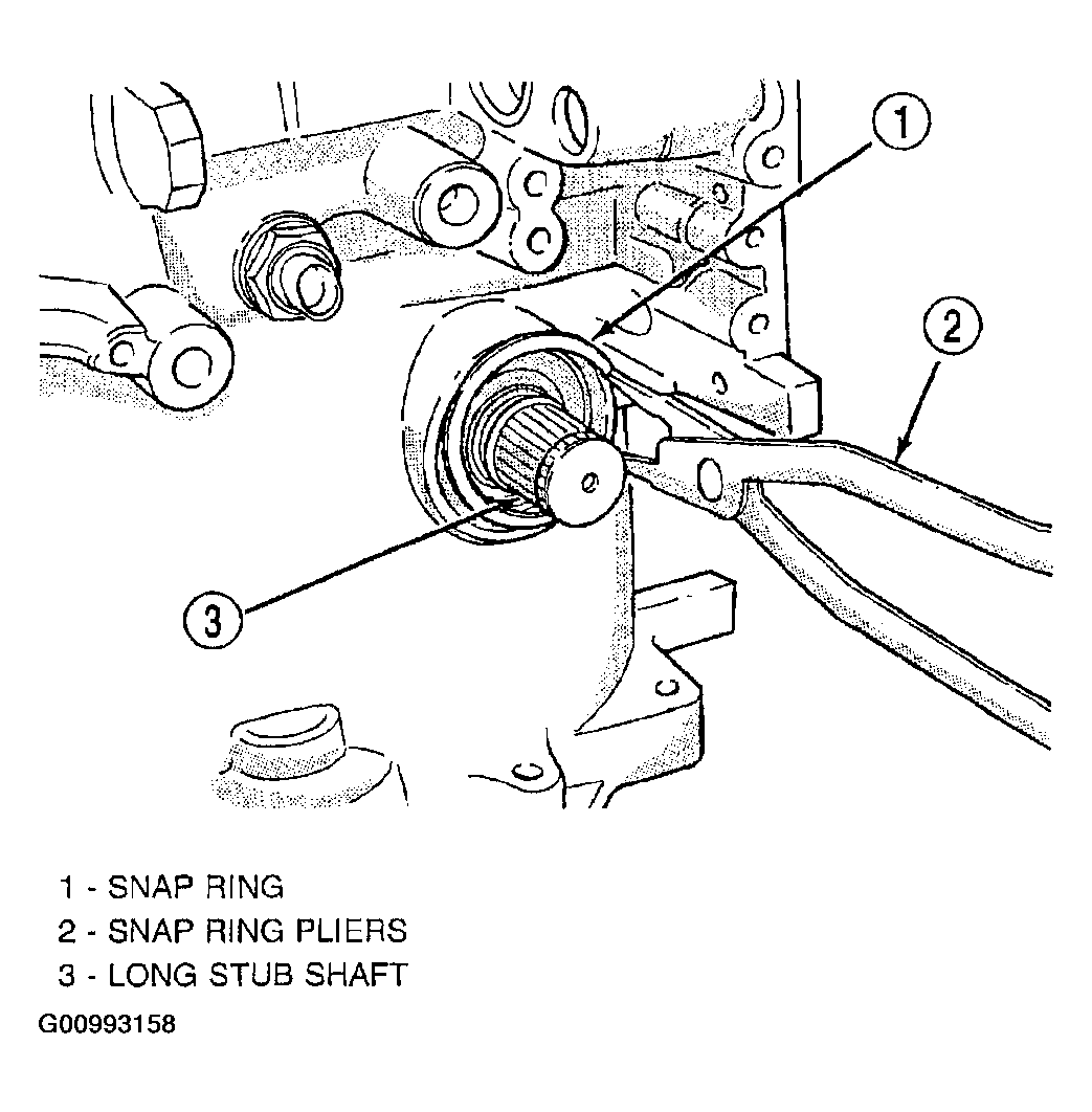 - Remove long stub shaft bearing snap ring. See Fig 14.