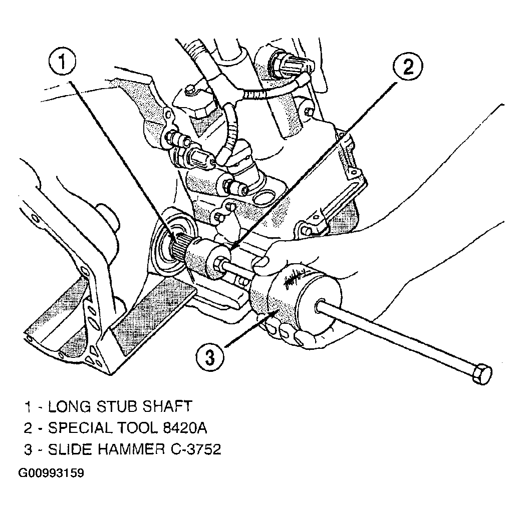 - Remove long stub shaft and bearing from bellhousing using Tools 8420A and C-3752. See Fig 15.