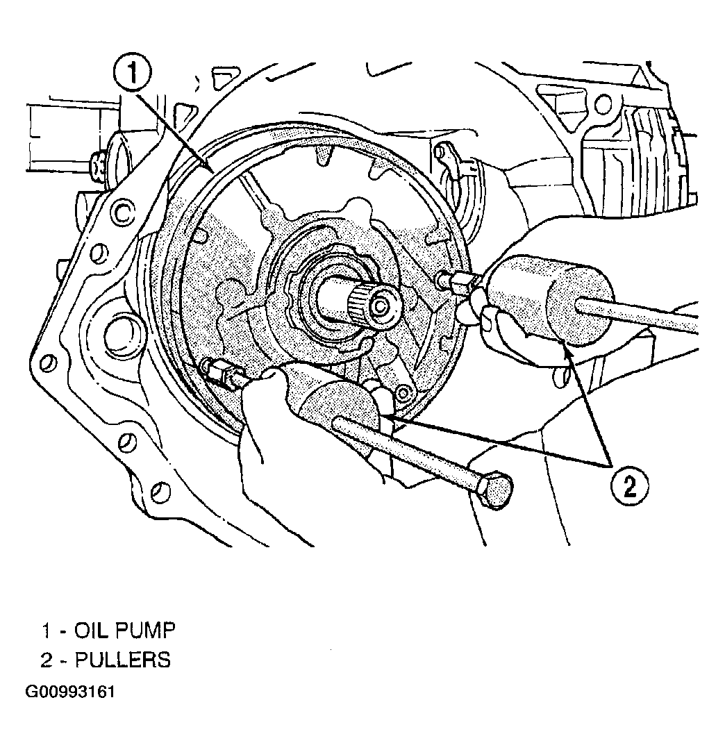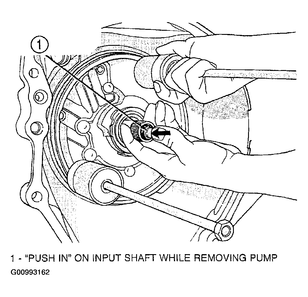 - Remove oil pump while pushing in on input shaft. See Fig 18.