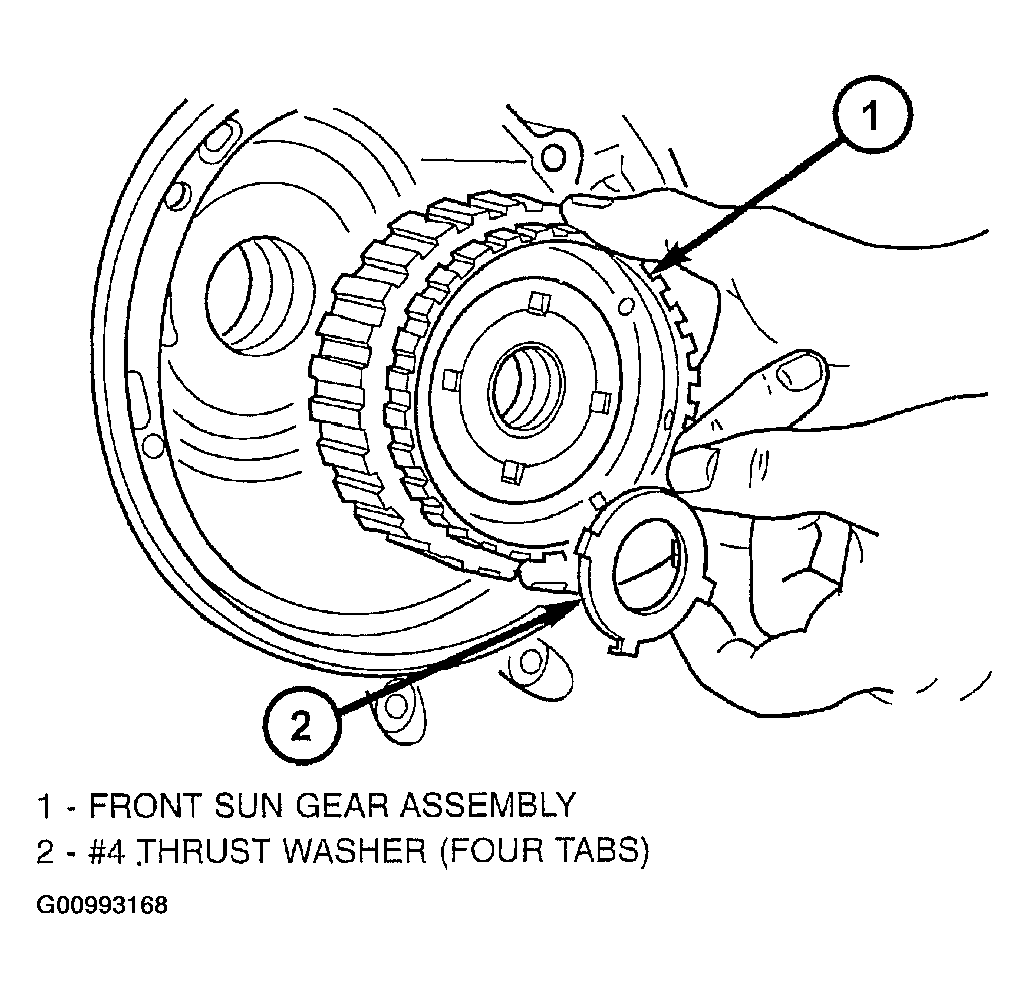 - Remove front sun gear assembly and #4 thrust washer (if still in place). See Fig 24.