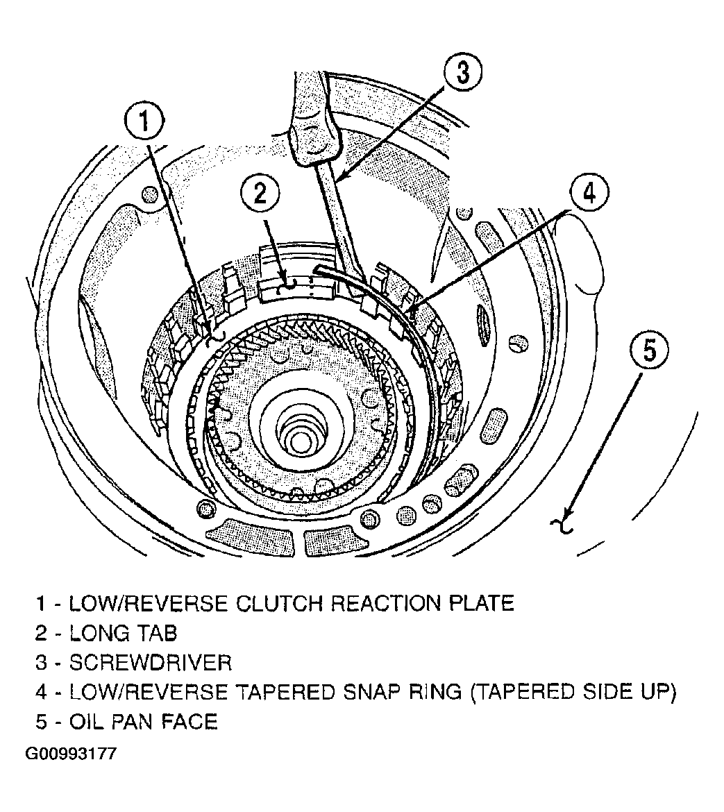 - Remove low/reverse reaction plate snap ring. See Fig 36.