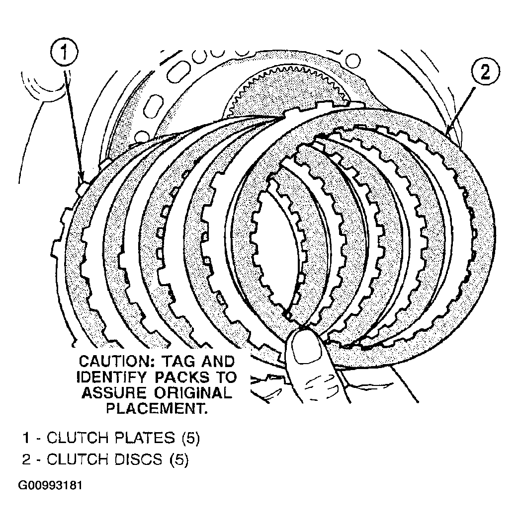 Tag all clutch pack assemblies, as they are removed, for reassembly identification.