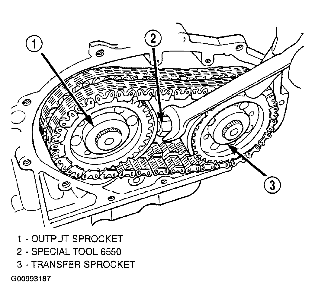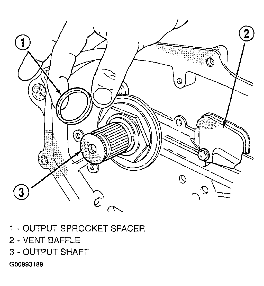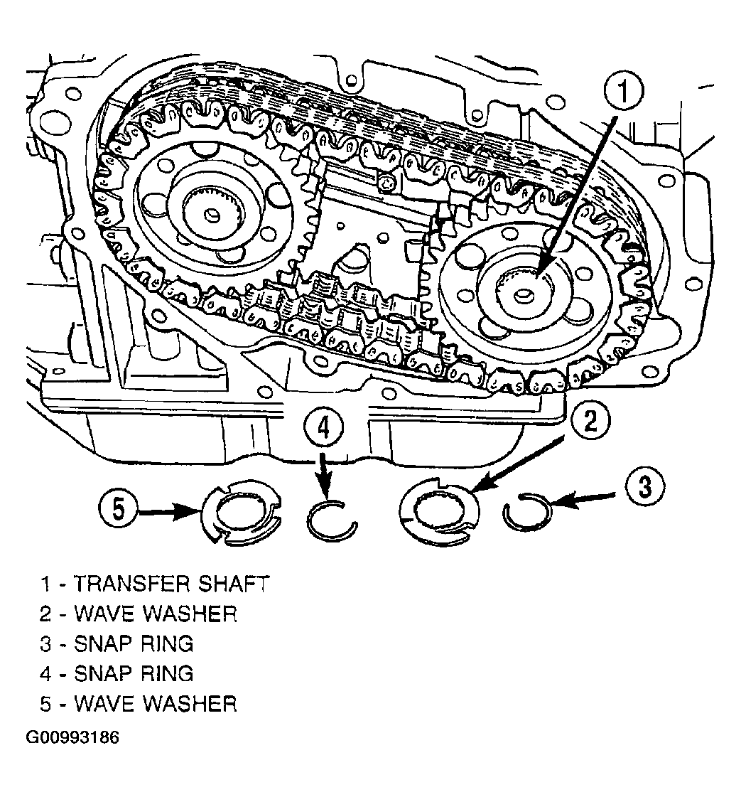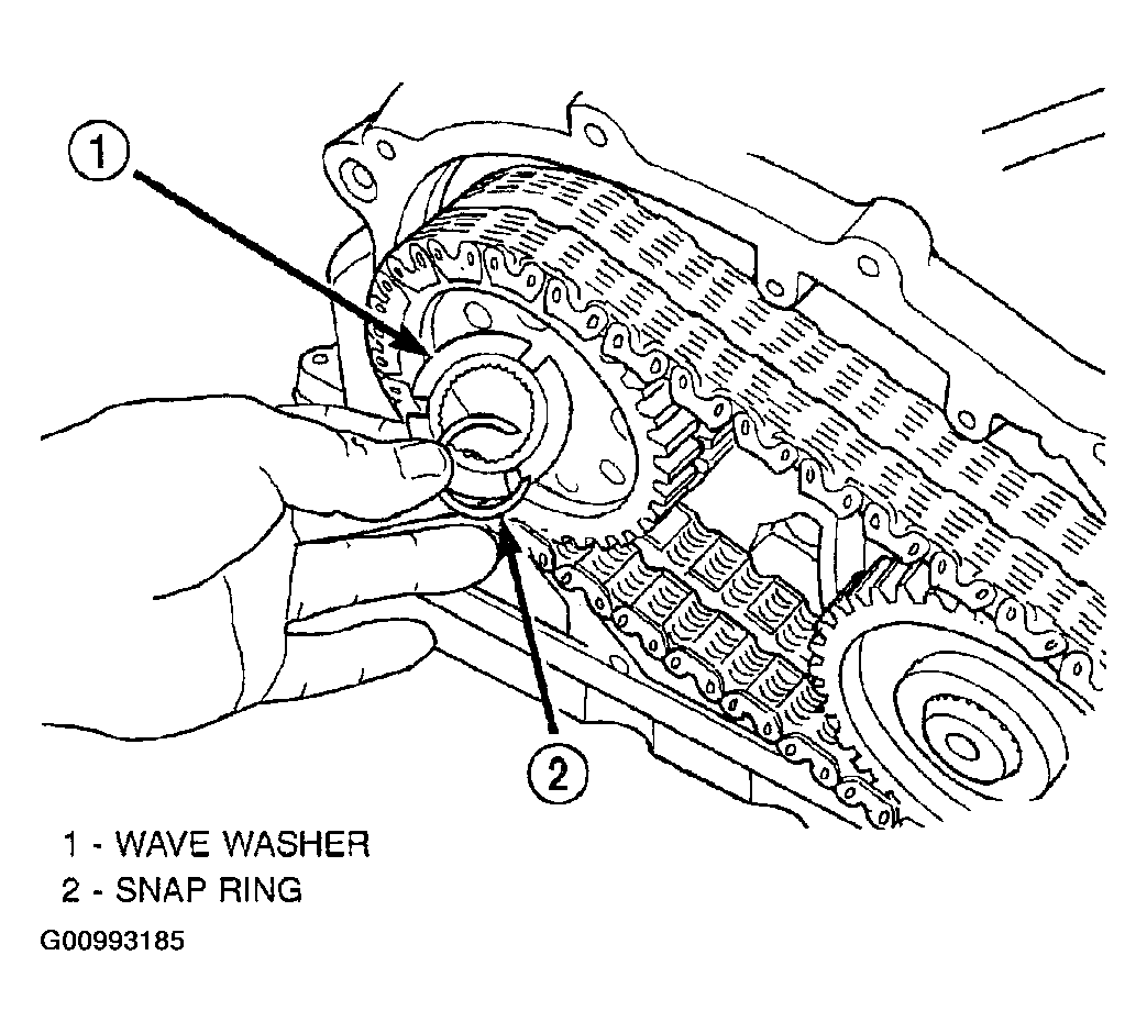 - Remove transfer and output shaft sprocket snap rings and wave washers. See Fig 41 and Fig 42