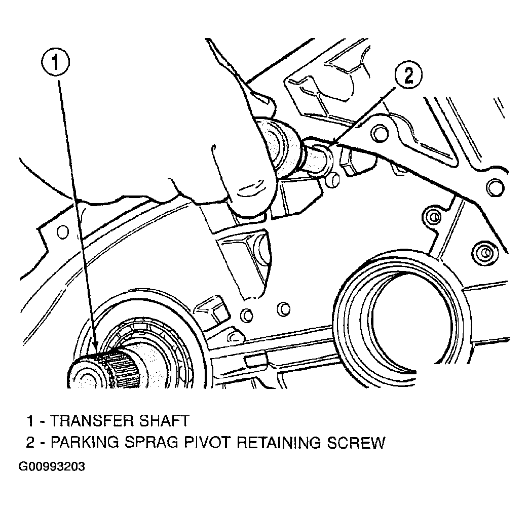 - Remove park sprag pivot retaining screw. See Fig 59.
