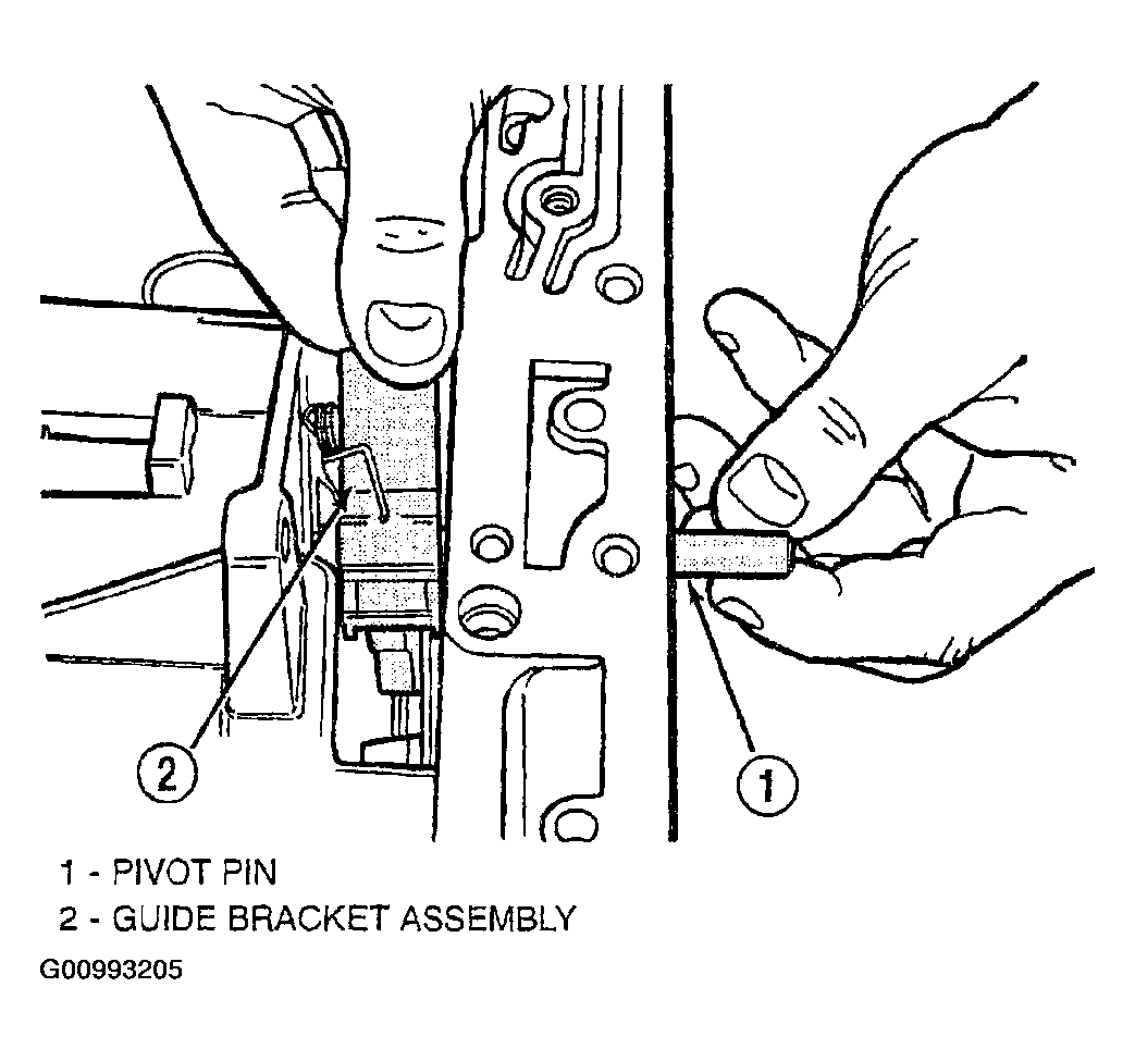 - Remove guide bracket pivot shaft. See Fig 61. Inspect all components for wear and replace if necessary. See Fig 62.