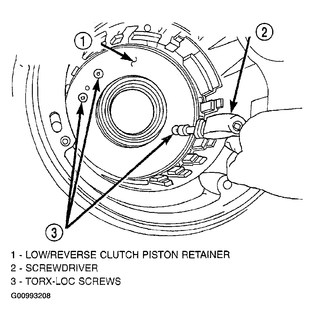 - Remove low/reverse piston retainer screws. See Fig 64.