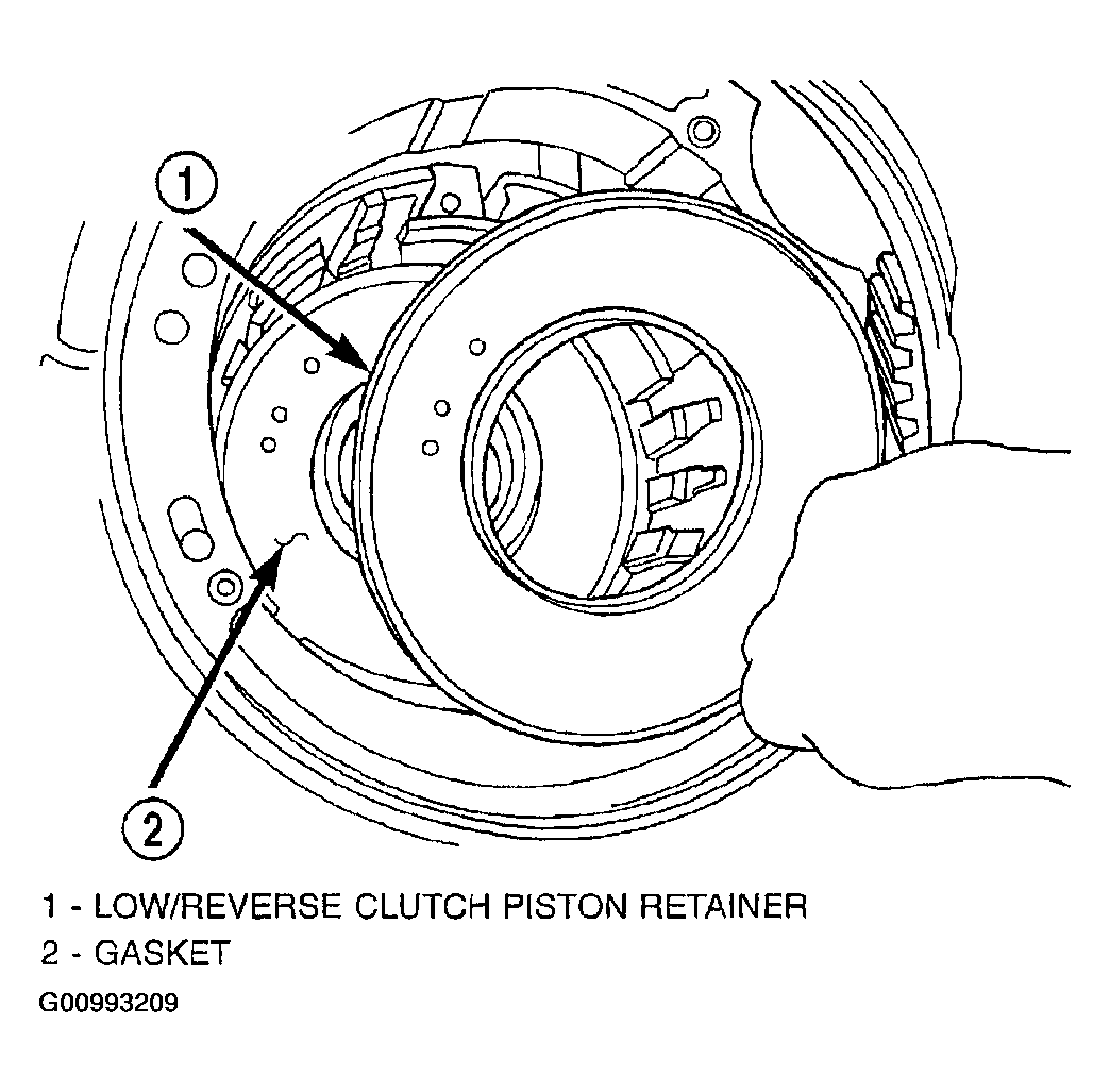 - Remove low/reverse piston retainer gasket. See Fig 66.
