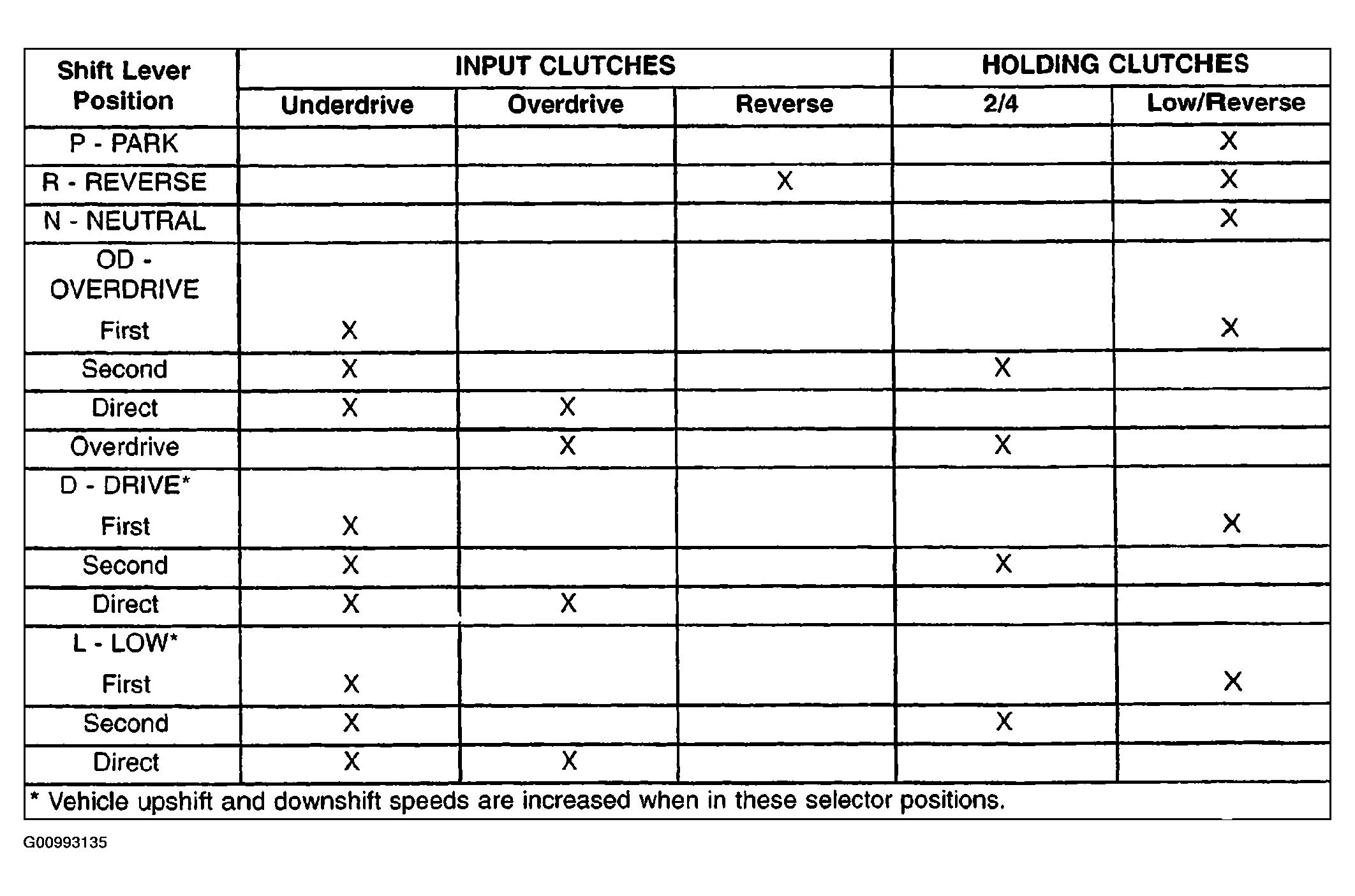 Refer to Figure for a collective view of which clutch elements are applied at each position of the selector lever.
