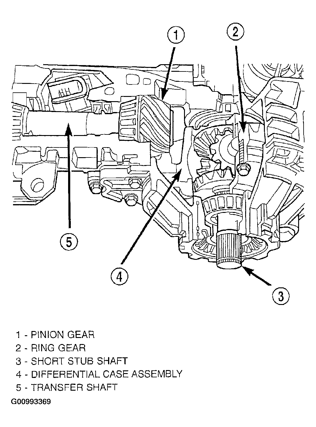 The 42LE differential is a conventional open design. It consists of a hypoid type ring and pinion set, and a differential case. The differential case consists of pinion and side gears, and a pinion shaft. The differential case is supported in the transaxle by tapered roller bearings. See Fig 1.
