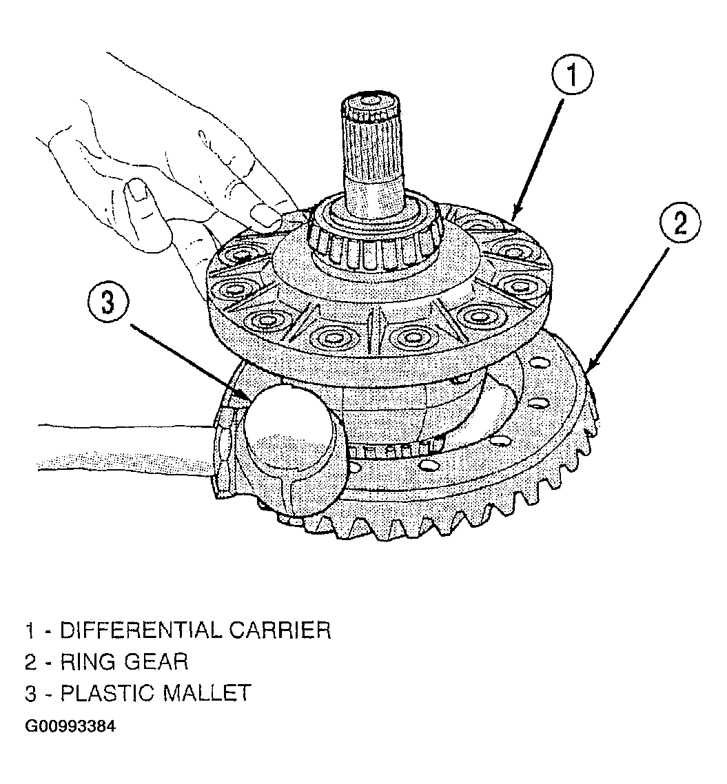 - Using a plastic or soft-tipped hammer, tap ring gear off of carrier. See Fig 15.