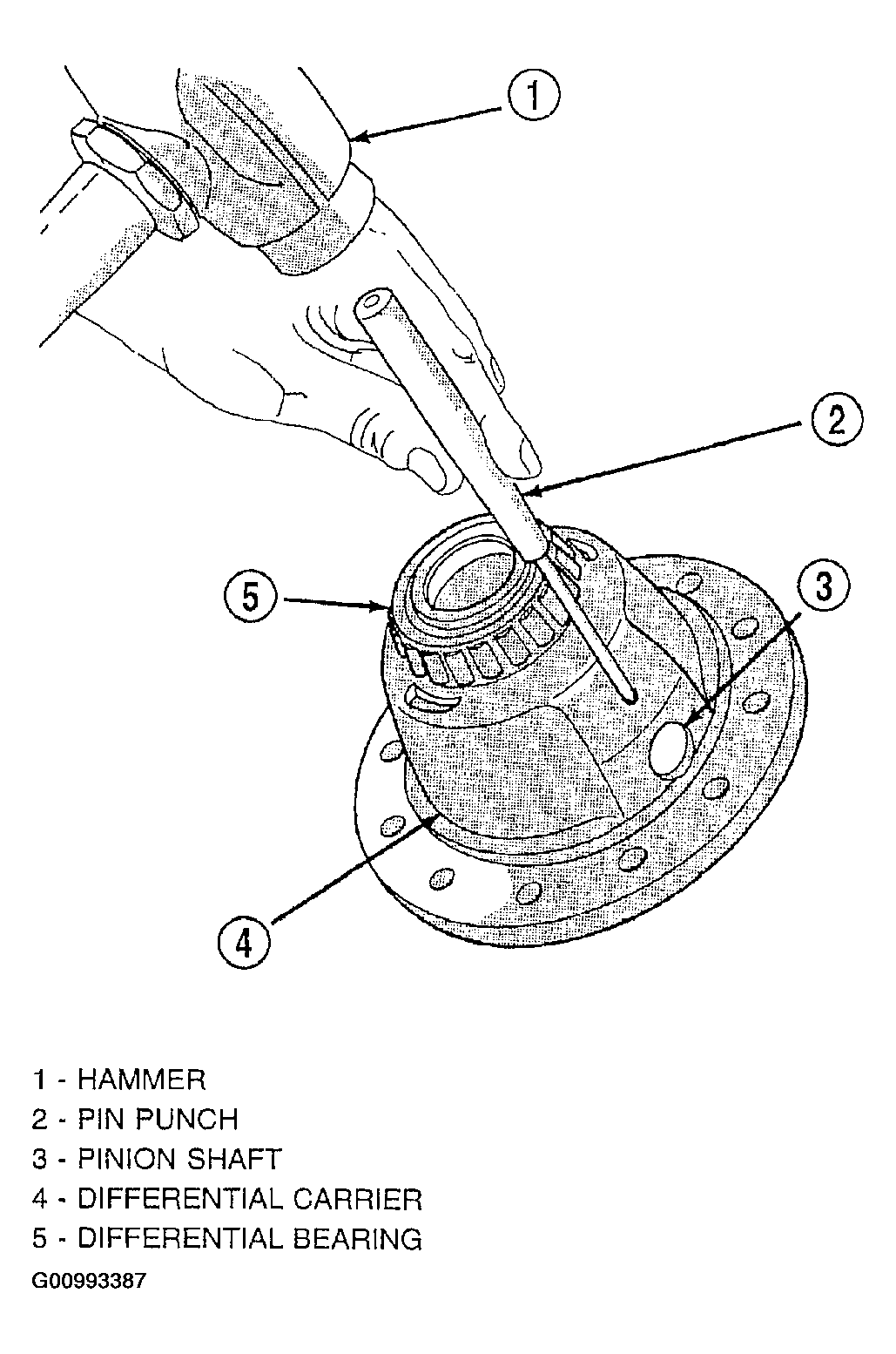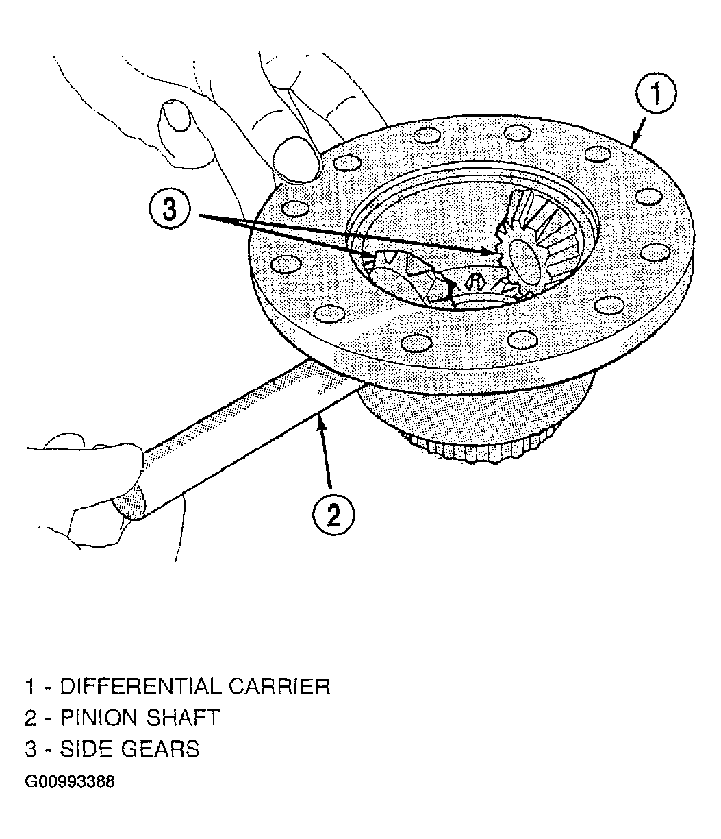 - Remove differential pinion shaft. Remove pinion and side gears. See Fig 19.