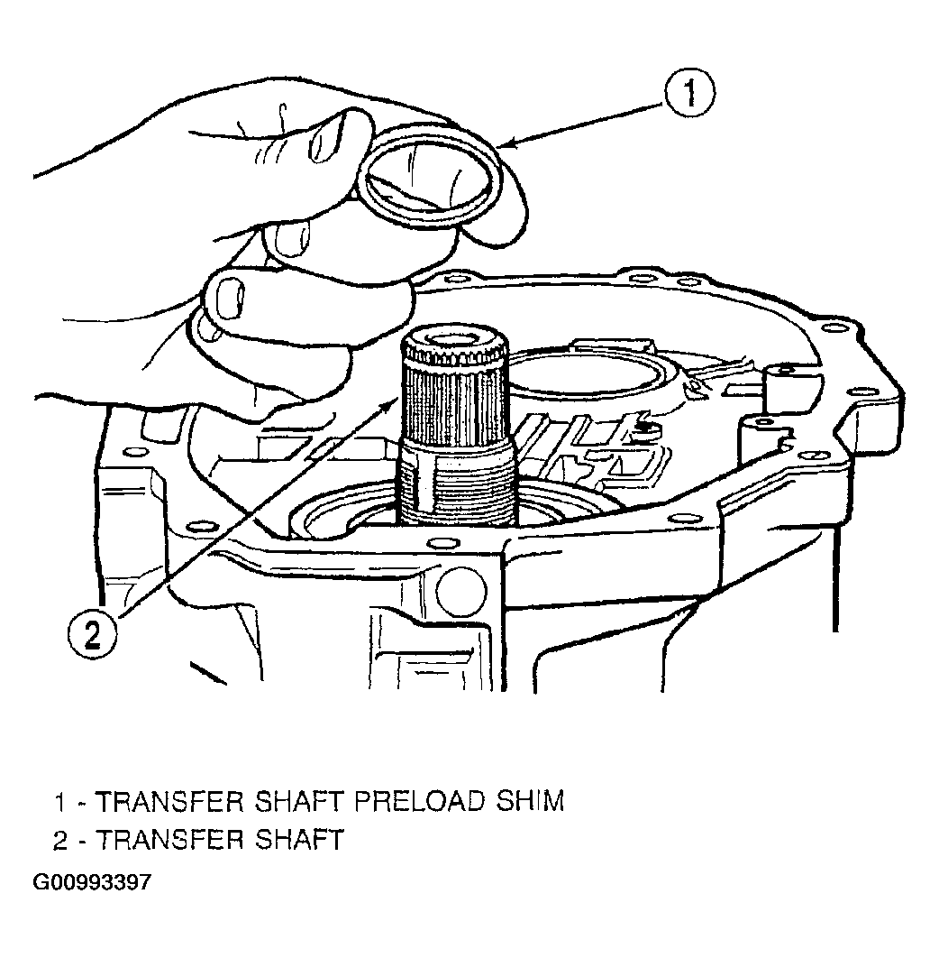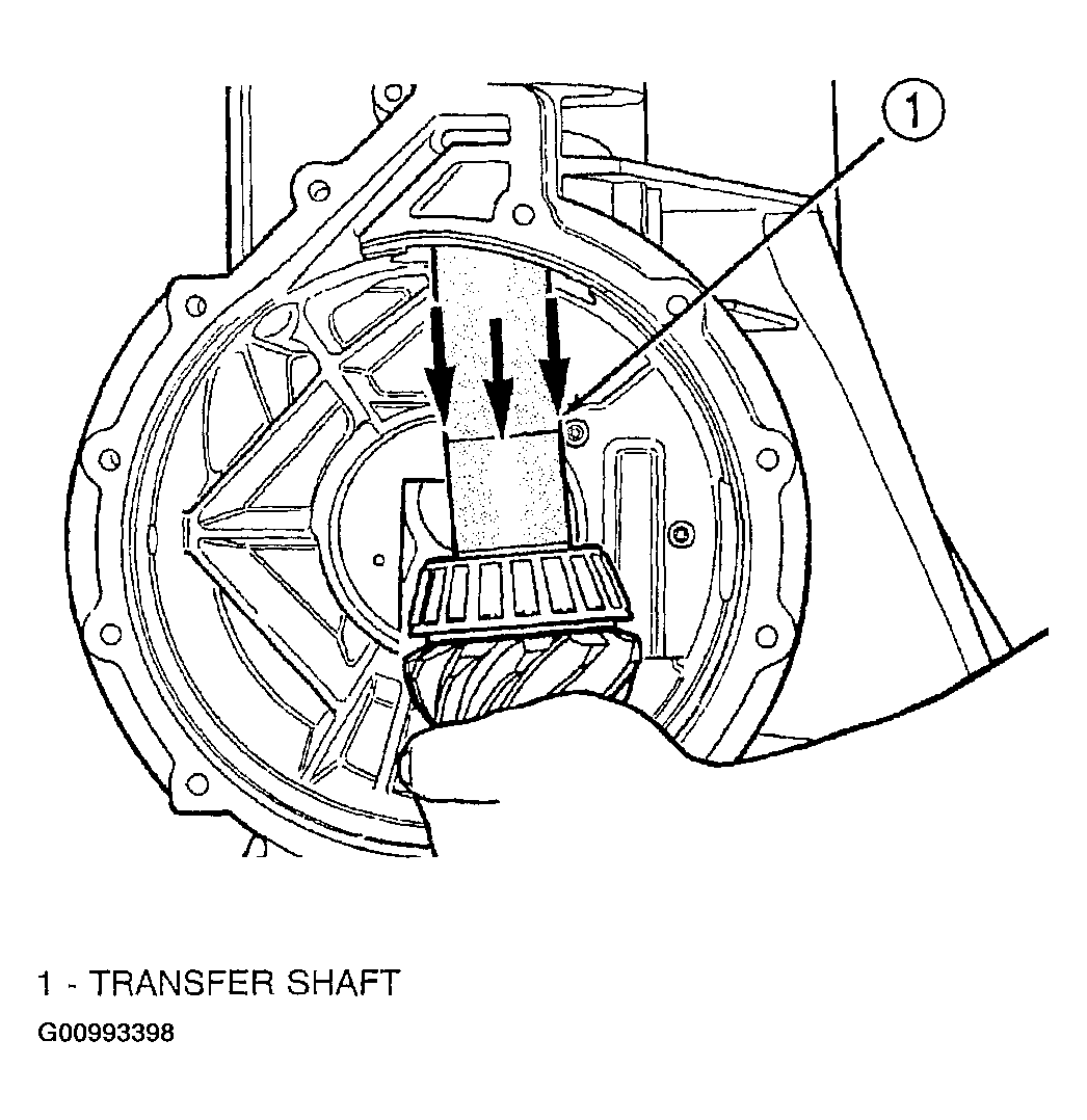 CAUTION: If the transfer shaft is removed from the transaxle case for any reason, both seals must be replaced.