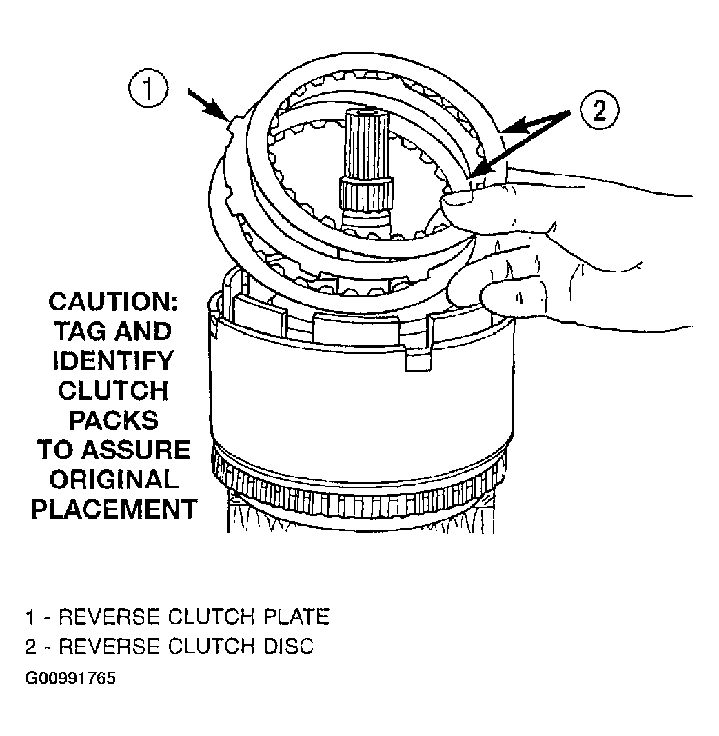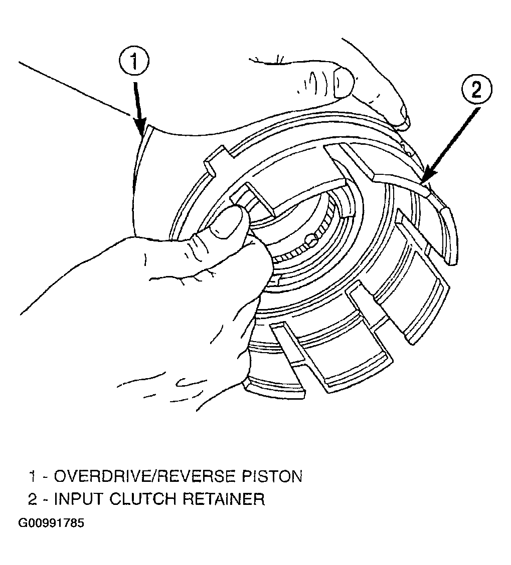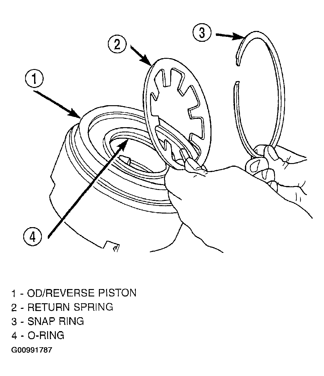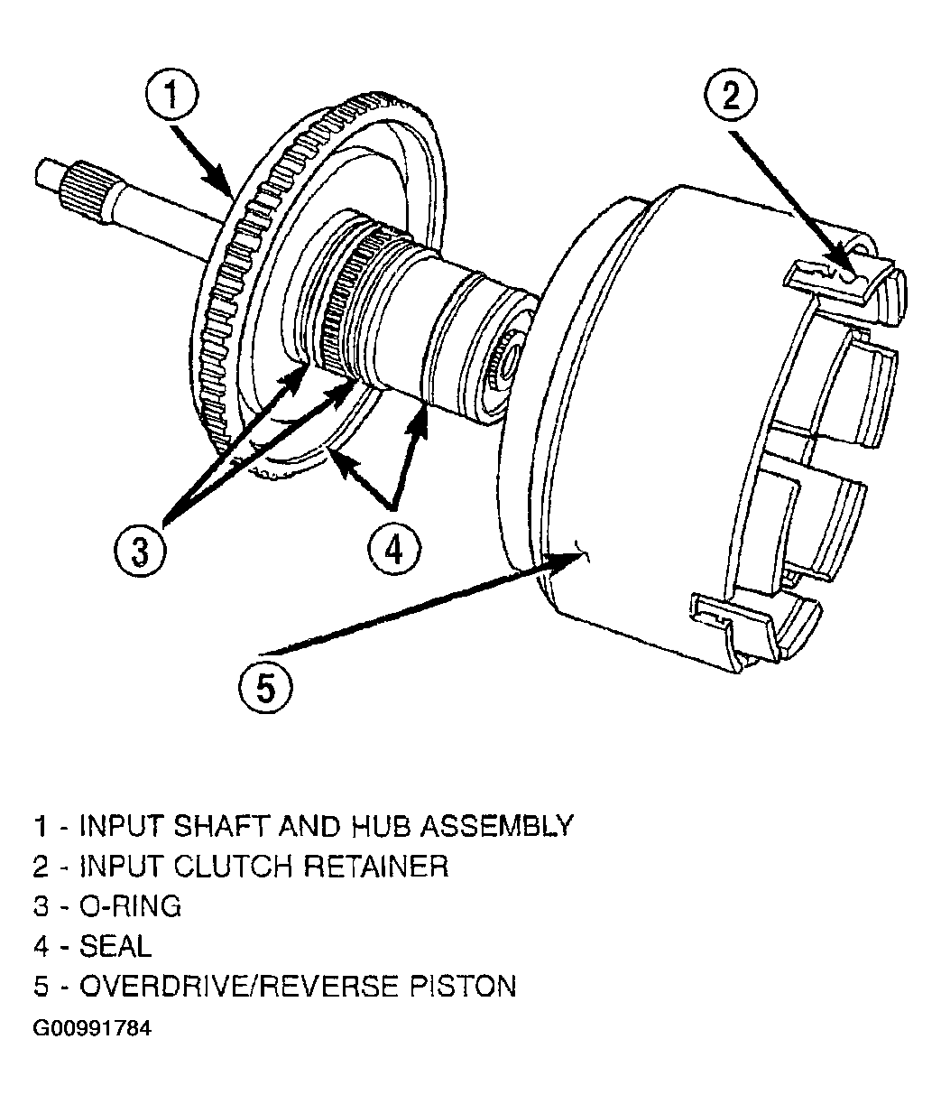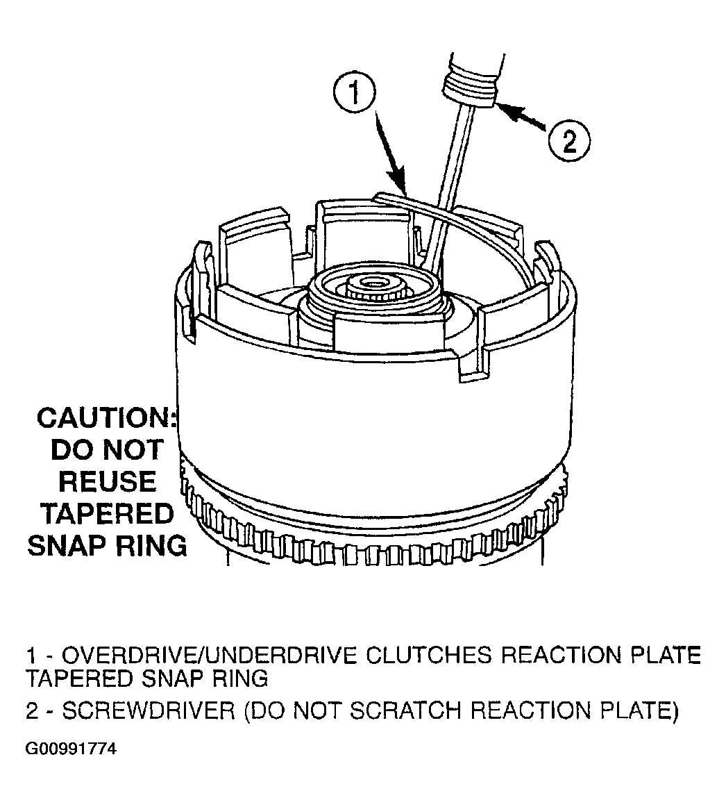 The OD/UD Reaction Plate, Snap Rings, and Input Clutch Retainer is not interchangeable with previous year 41TE components. The snap rings are thicker and the position of the ring lands have changed.