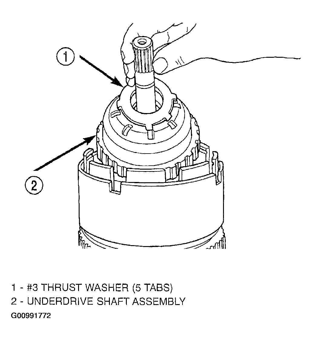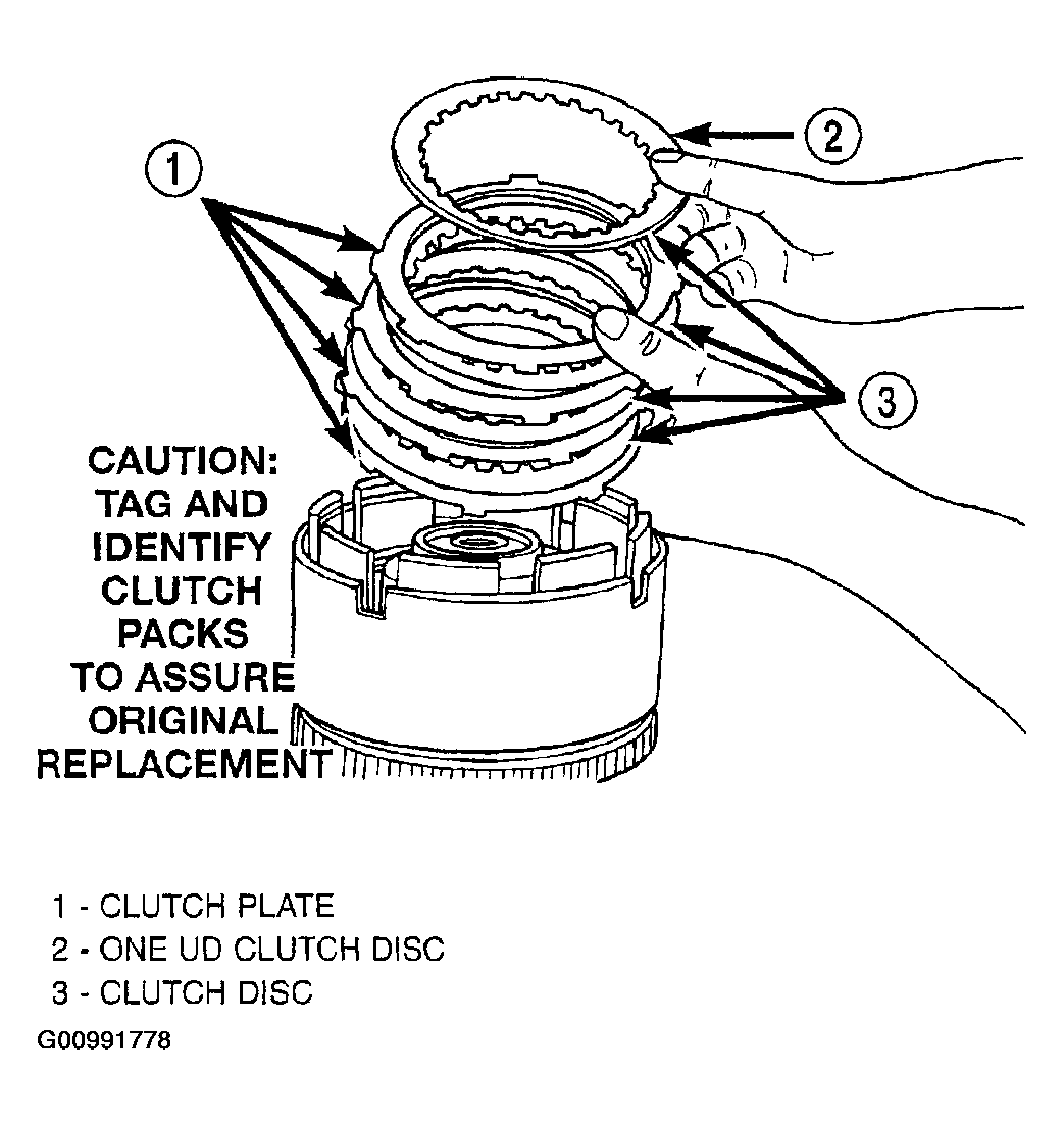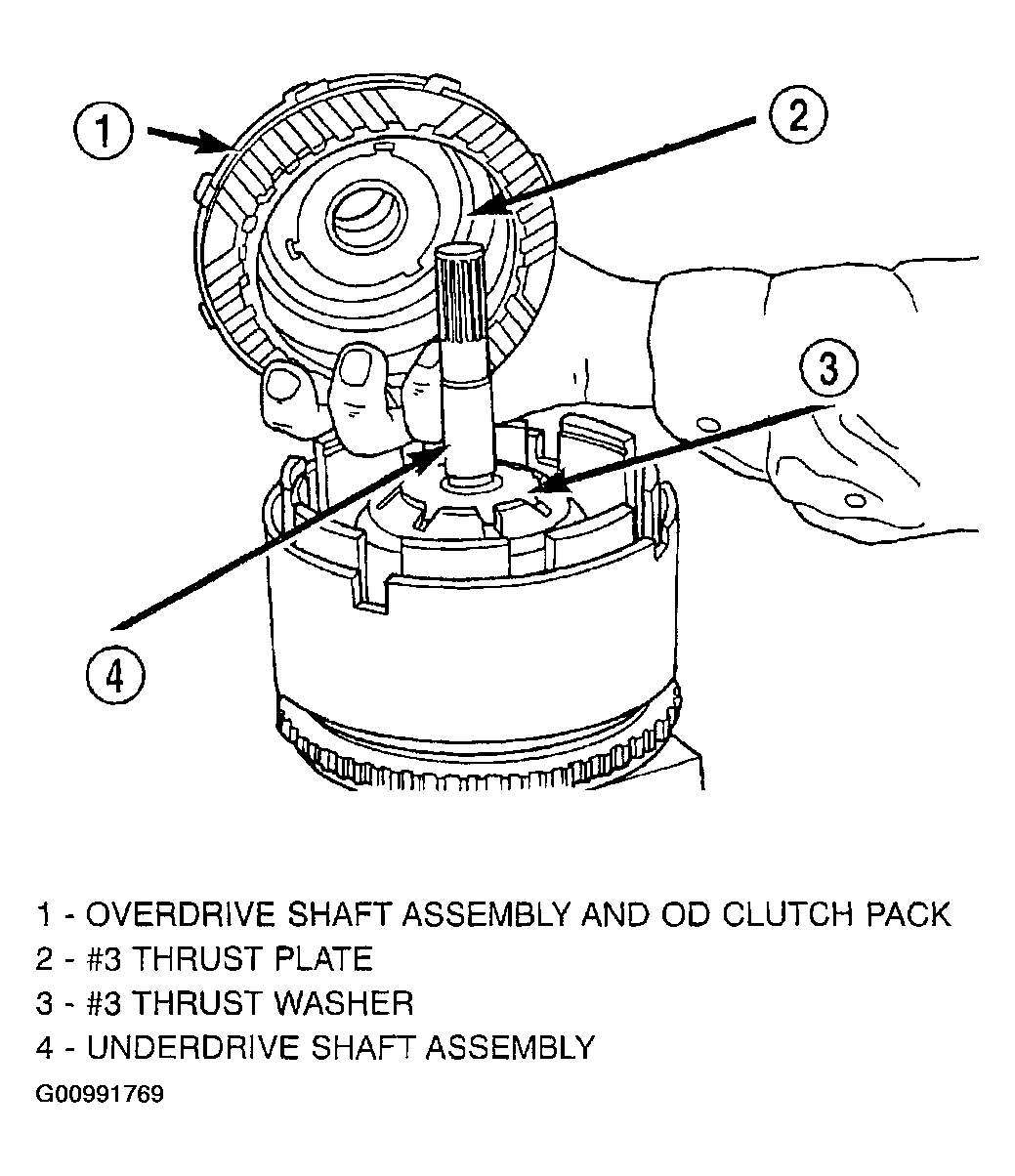 The OD/UD clutch reaction plate has a step on both sides. Install the OD/UD clutches reaction plate tapered step side up.