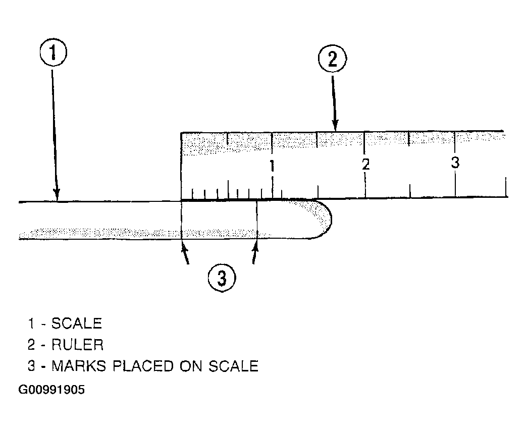 - Measure the distance between the two marks placed on the scale. See Fig 5. If the two marks on the scale are more than one inch apart, replace the drive chains.