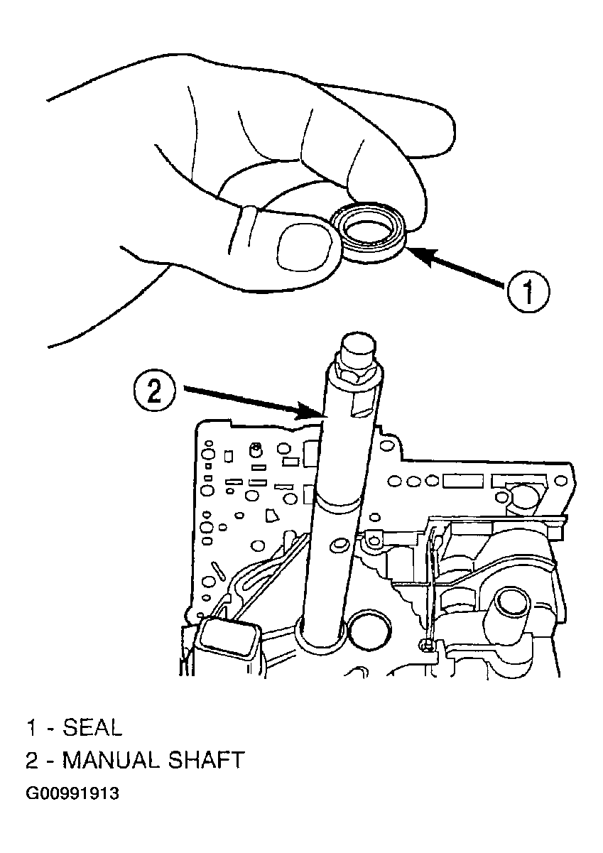 - Install the TRS to the manual shaft. Make sure TRS locating pin rests in manual valve bore slot.