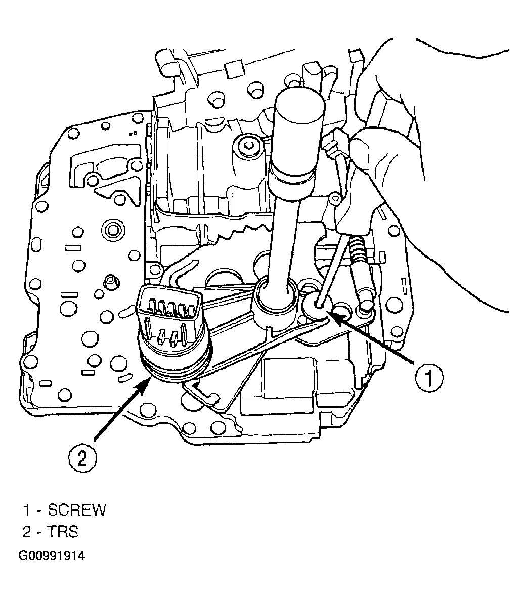 - Install the TRS/manual shaft retaining screw and torque to 5 N.m (45 in. lbs.) torque. See Figure.