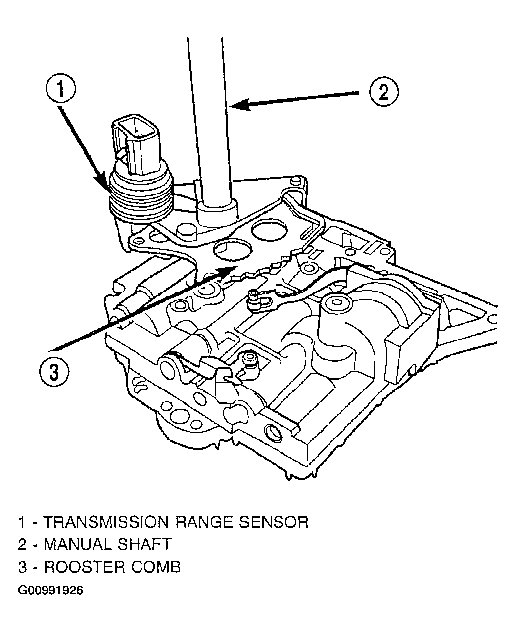 - Remove Transmission Range Sensor (TRS) and manual shaft. See Fig 2.