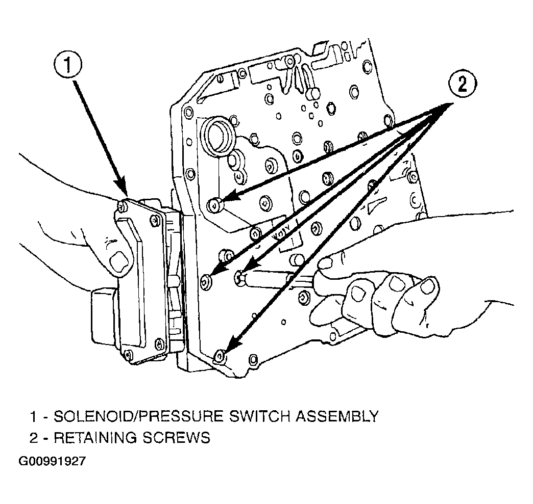 - Remove Solenoid/Pressure Switch Assembly from valve body. See Fig 3.