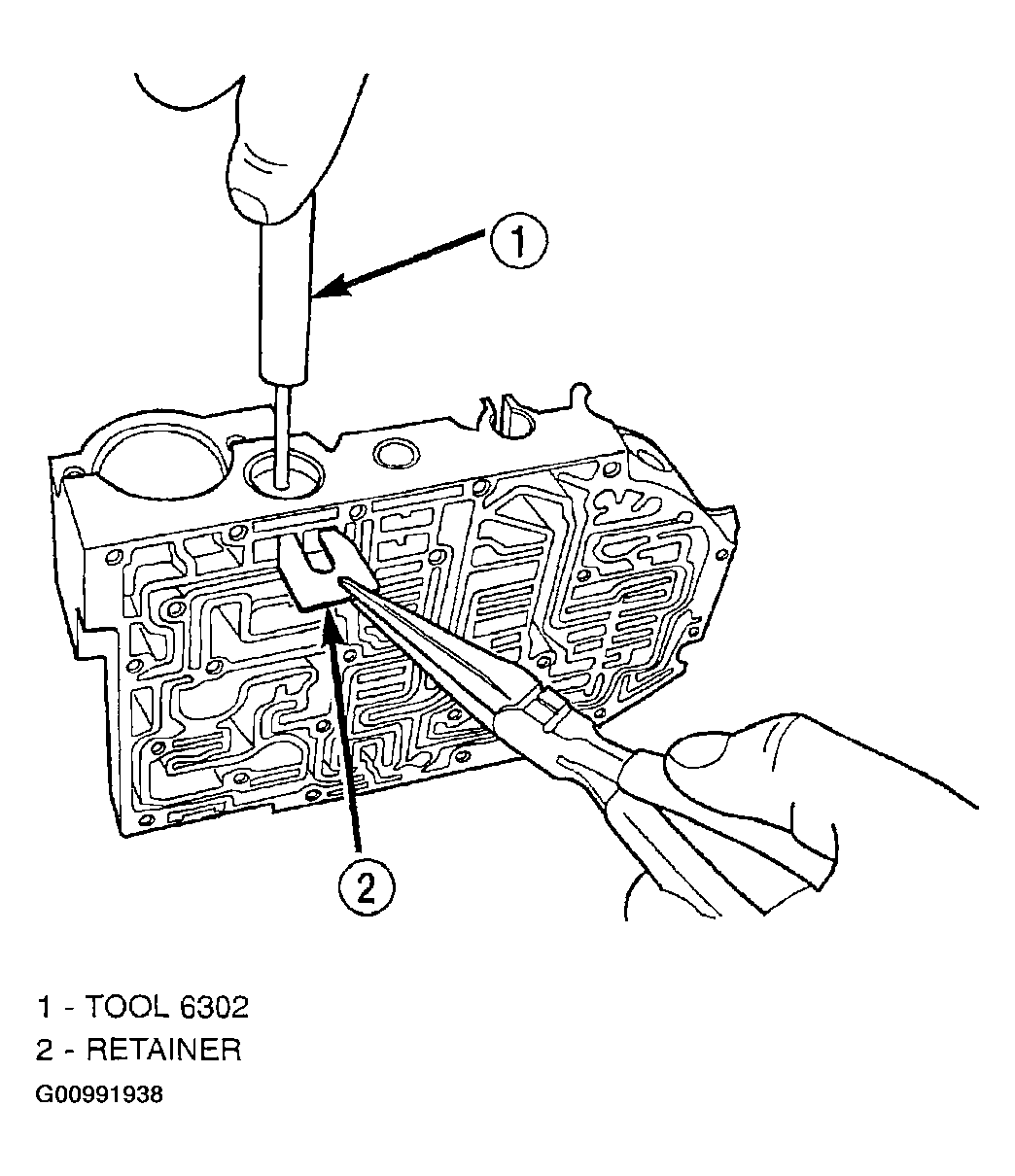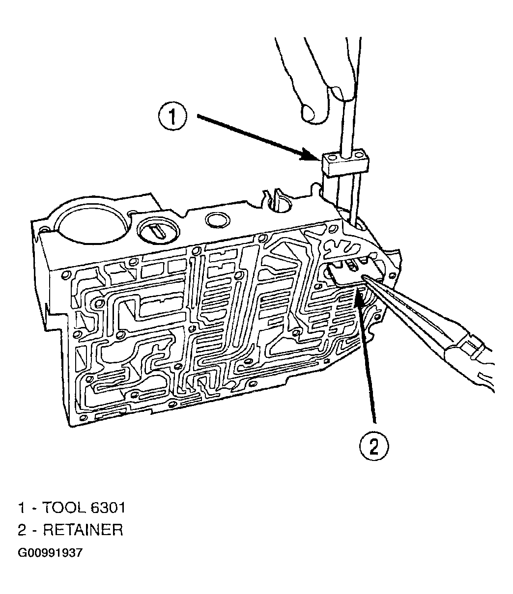 - Remove dual retainer plate from valve body. Use special tool 6301 to remove plate. See Fig 13.