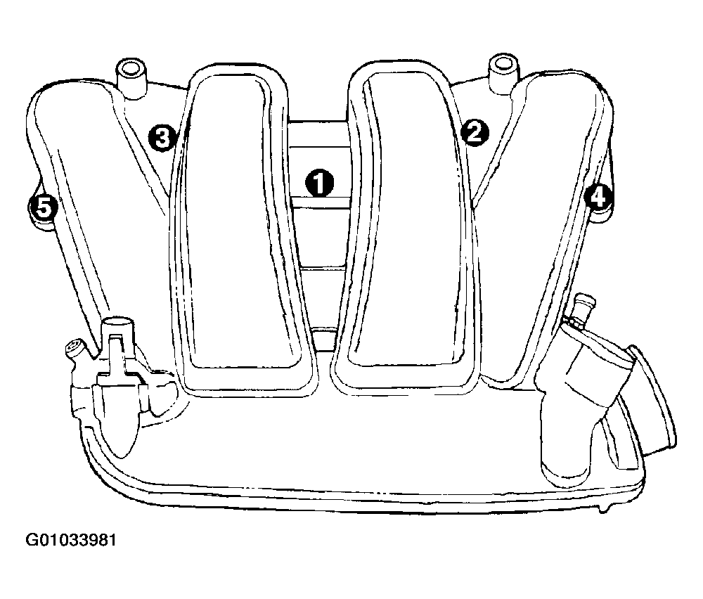 - Install intake manifold onto cylinder head and tighten fasteners to 12 N.m (105 in. lbs.) in sequence shown in. (Fig 1).