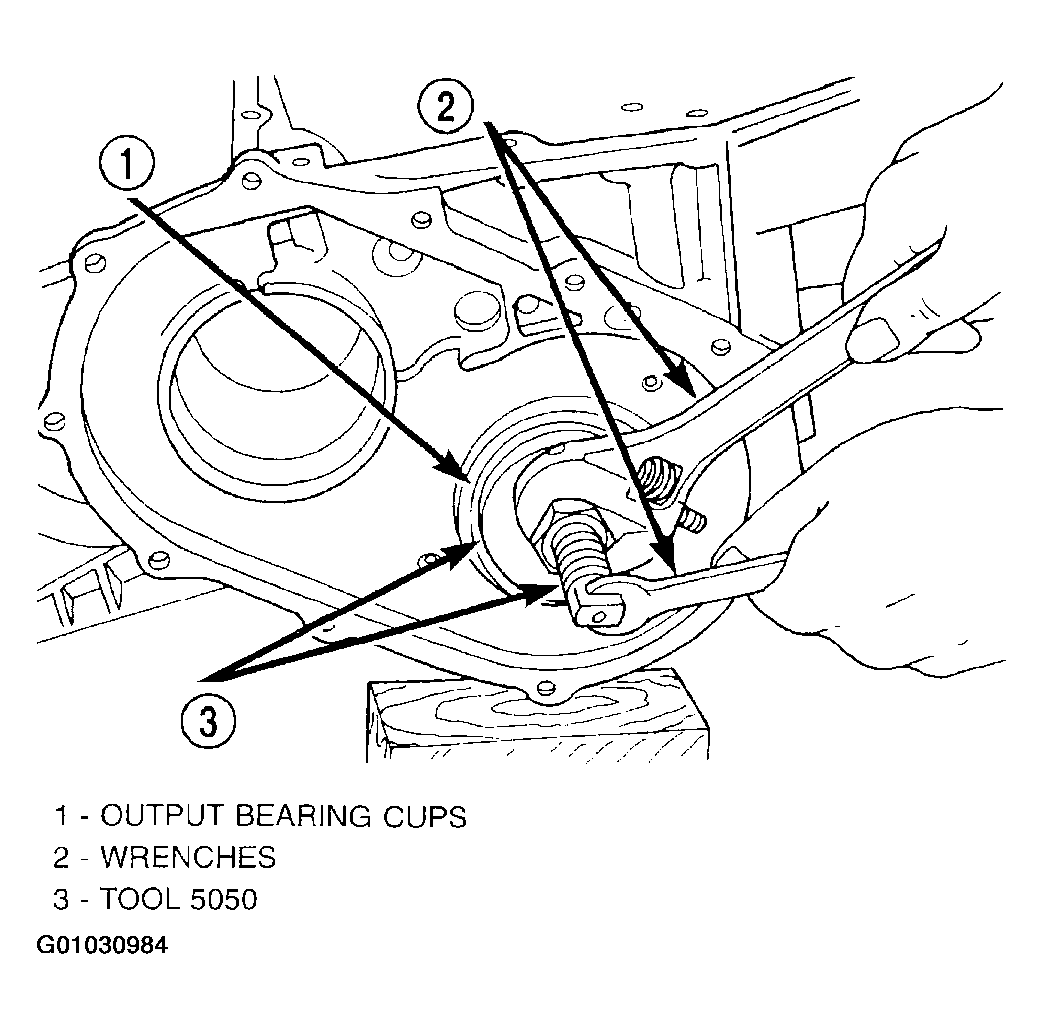 1. Install both output bearing cups using Tool 5050. (Fig 1).