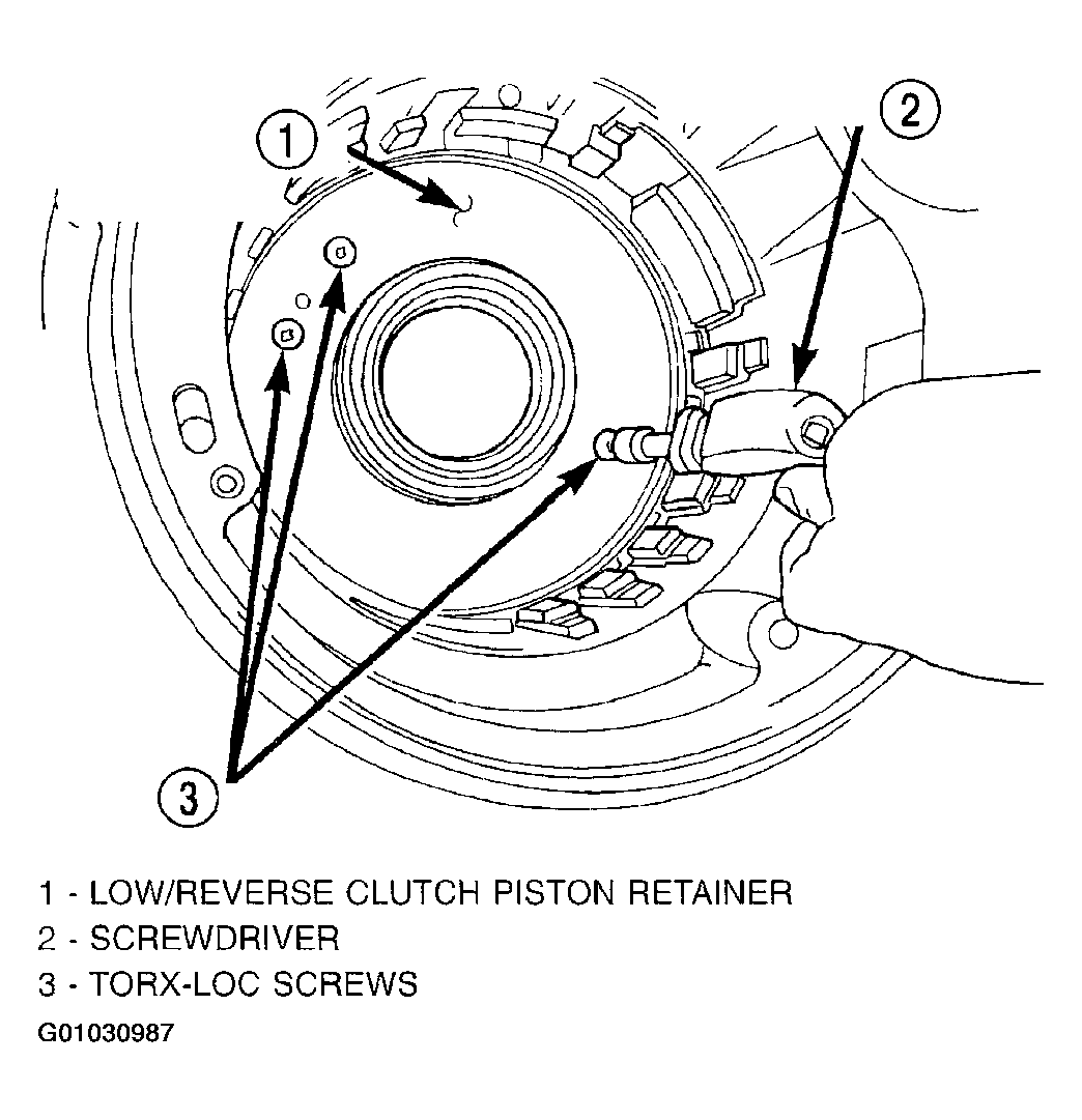 4. Install low/reverse piston retainer-to-case bolts and torque to 5 N.m (45 in. lbs.). (Fig 4).