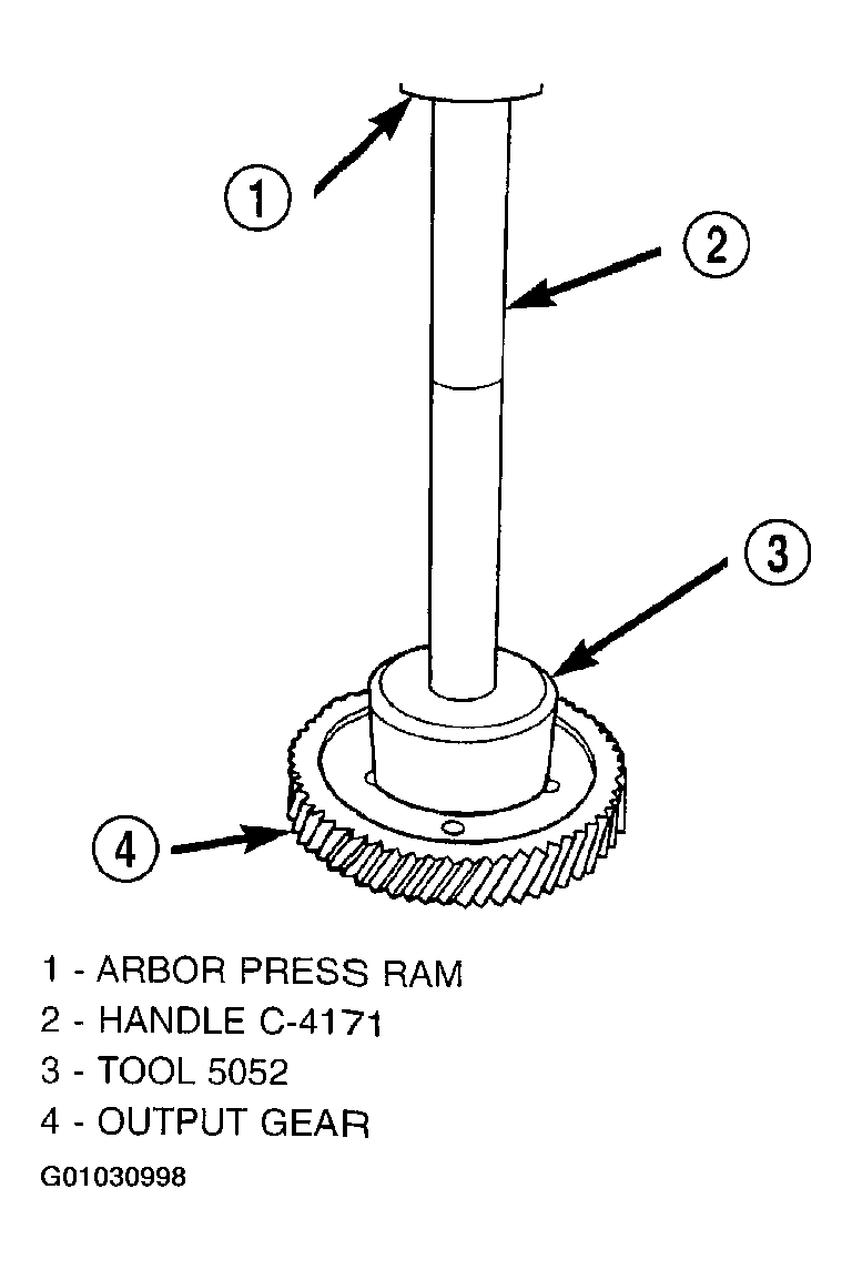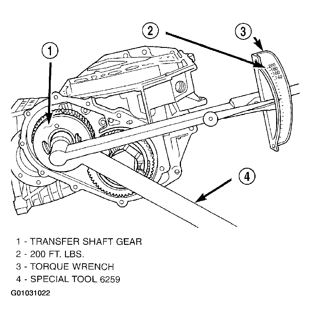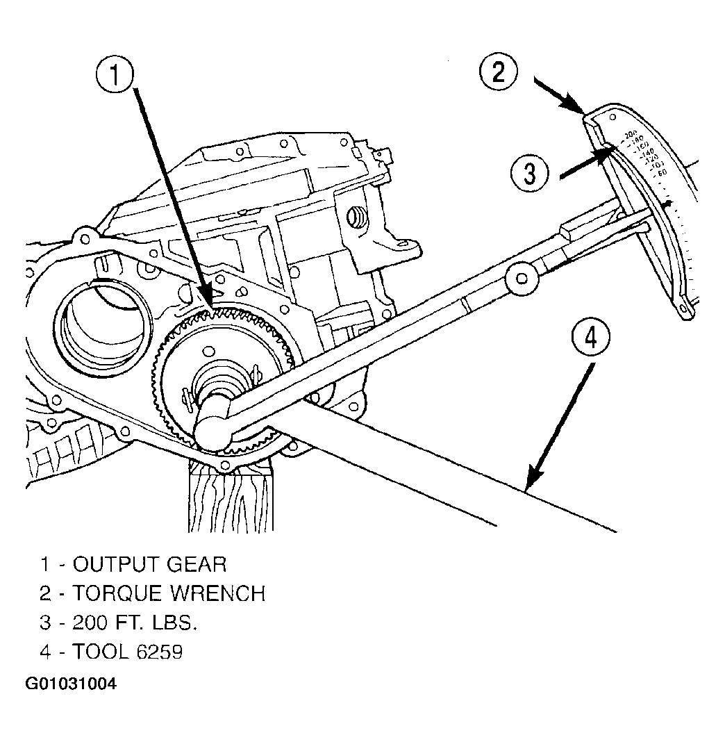 2. Using Tool 6259, install output gear and bearing assembly. Torque to 271 N.m (200 ft. lbs.).