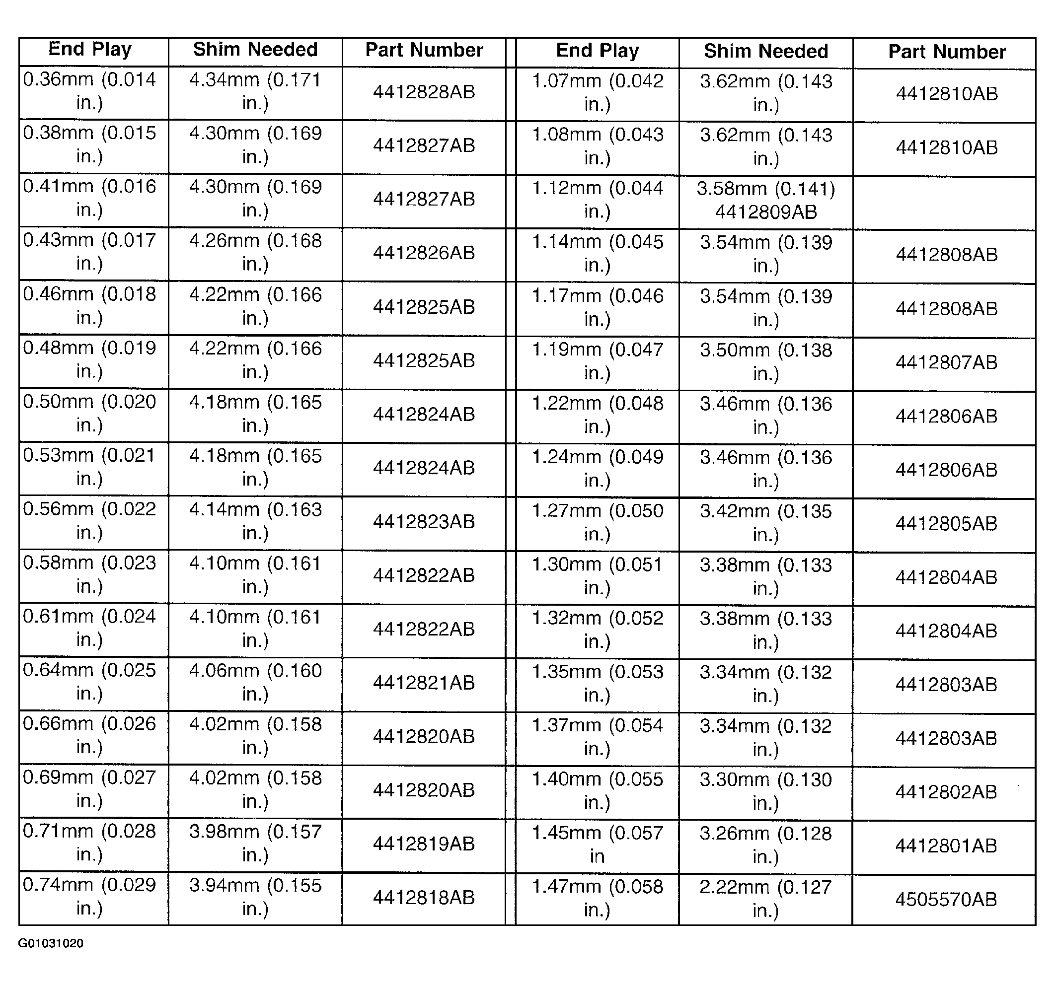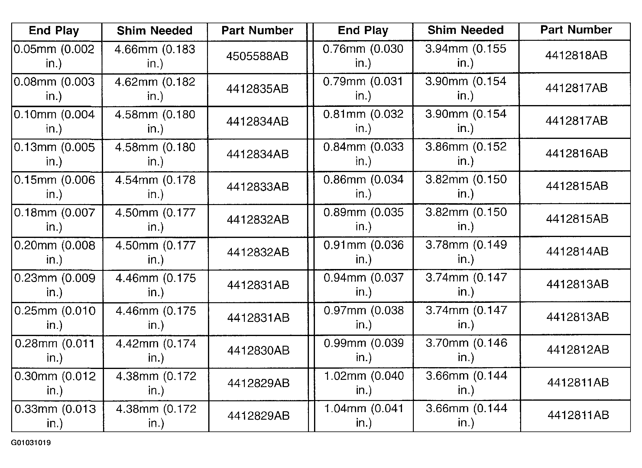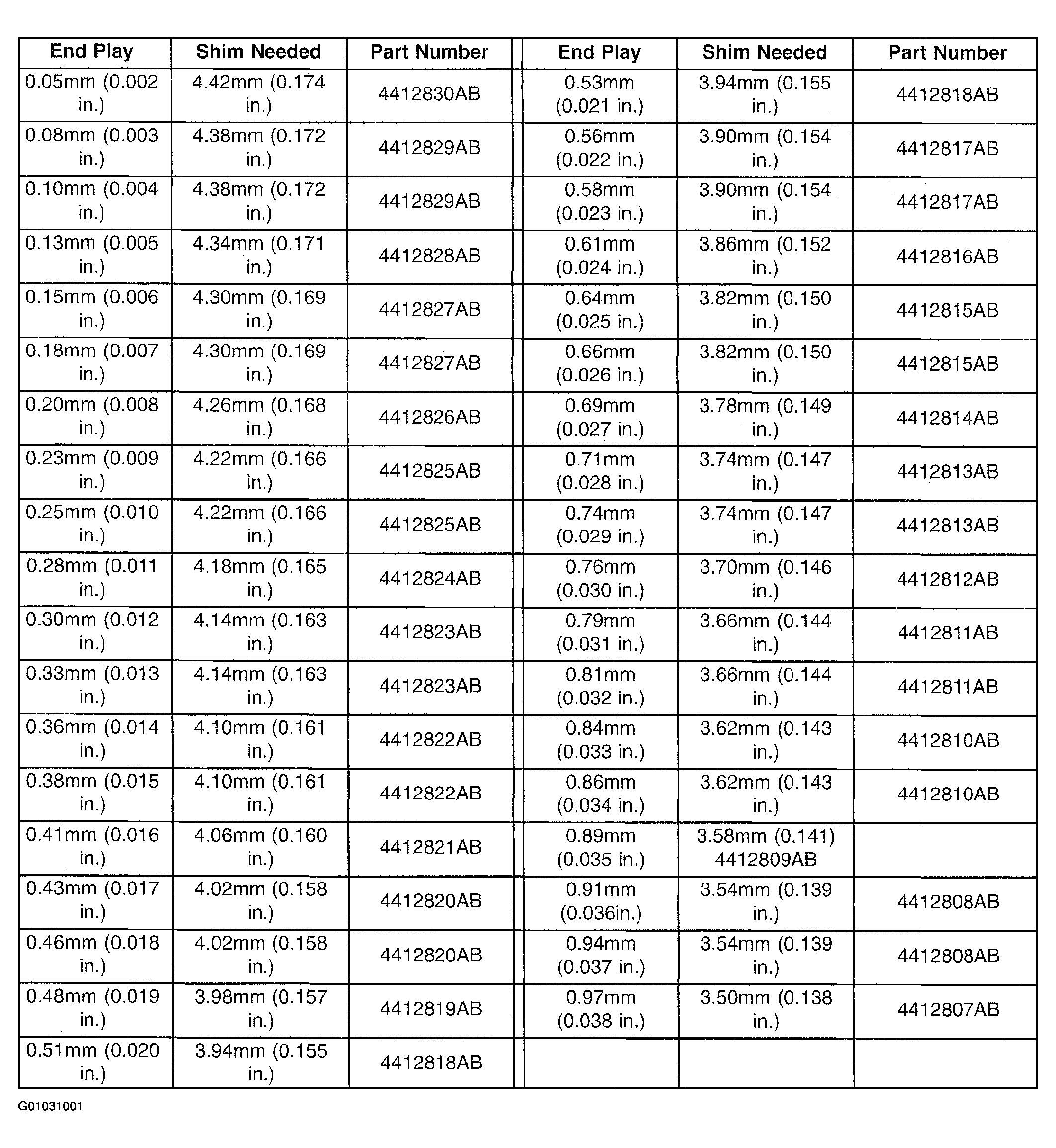 Fig 18: Output Gear Bearing Shim Chart