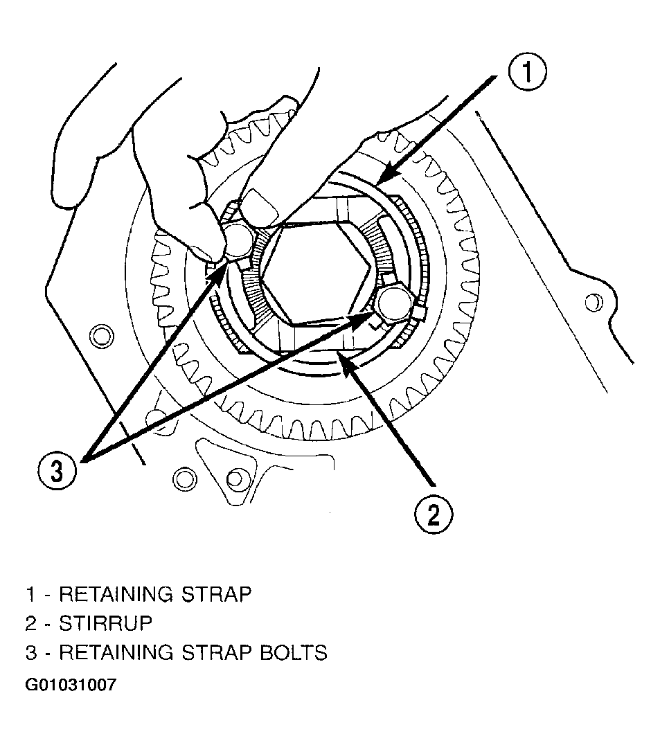18. Install output gear stirrup with serrated side out. (Fig 23).