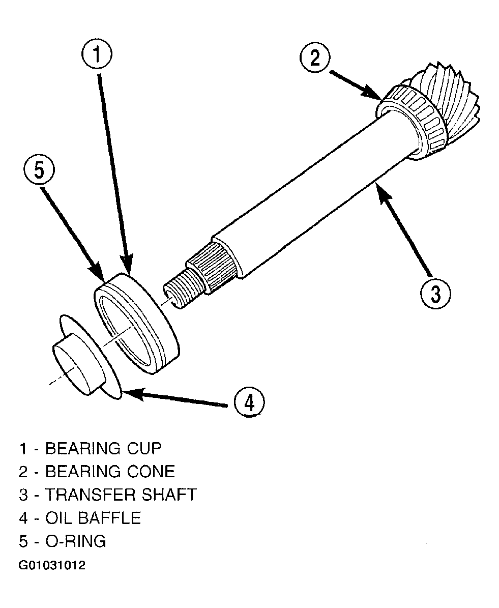 25. Install bearing cup and oil baffle to transfer shaft. (Fig 29).