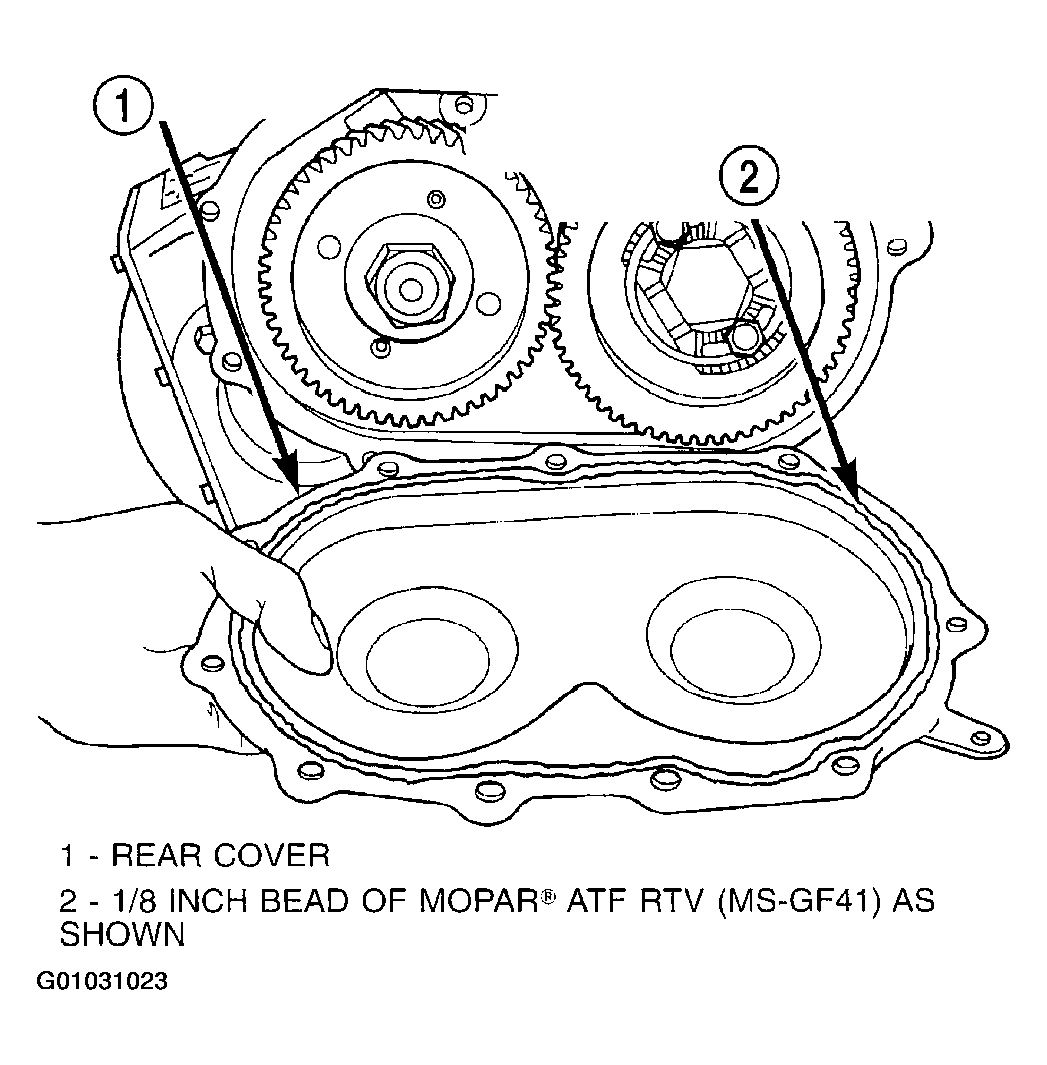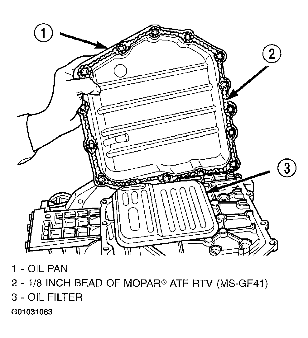 66. Apply an 1/8" bead of Mopar® ATF RTV (MS-GF41) to oil pan and immediately install to case. (Fig 80).