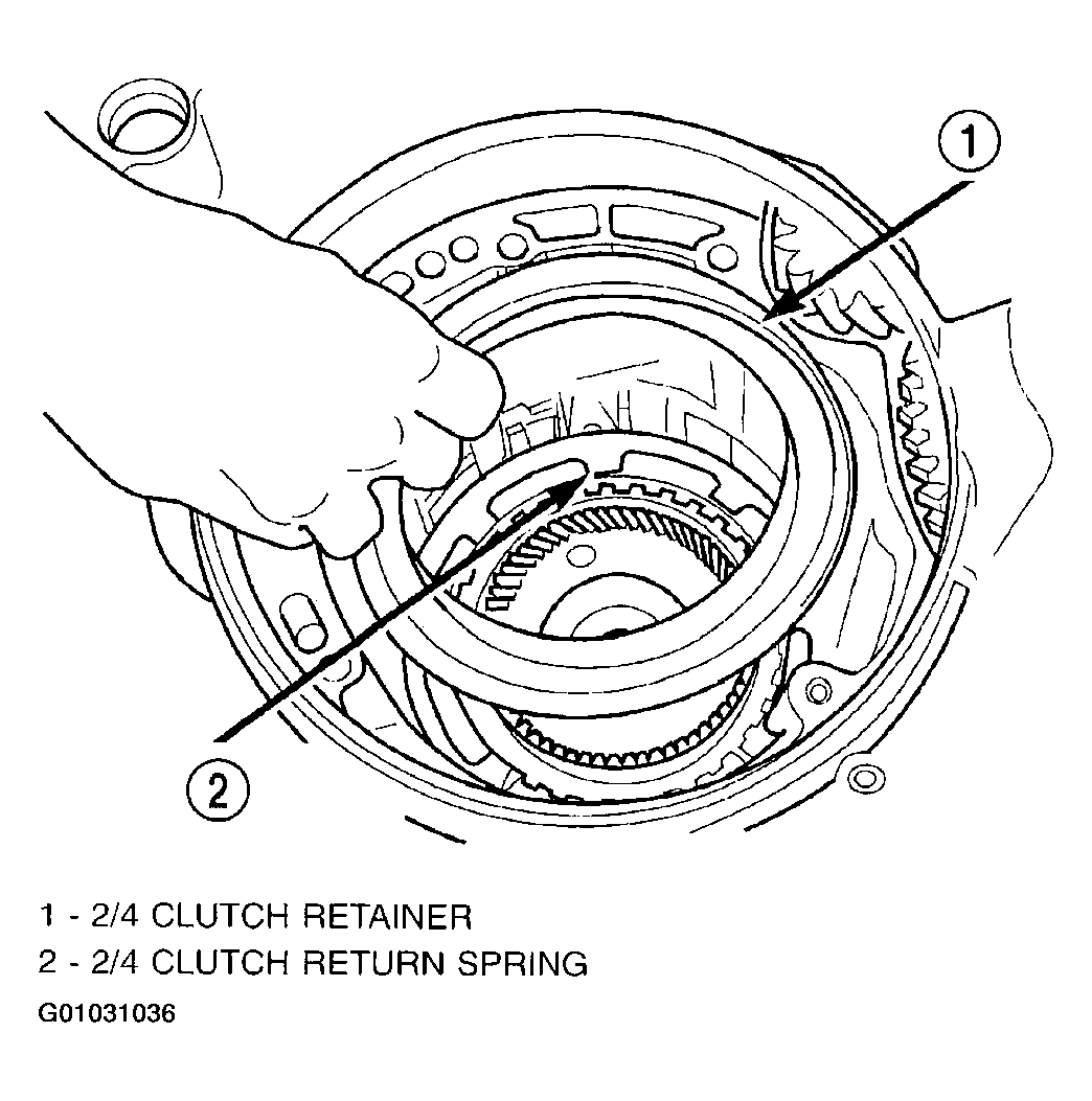 Fig 52: Identifying Proper Orientation Of 2/4 Clutch Retainer & Spring