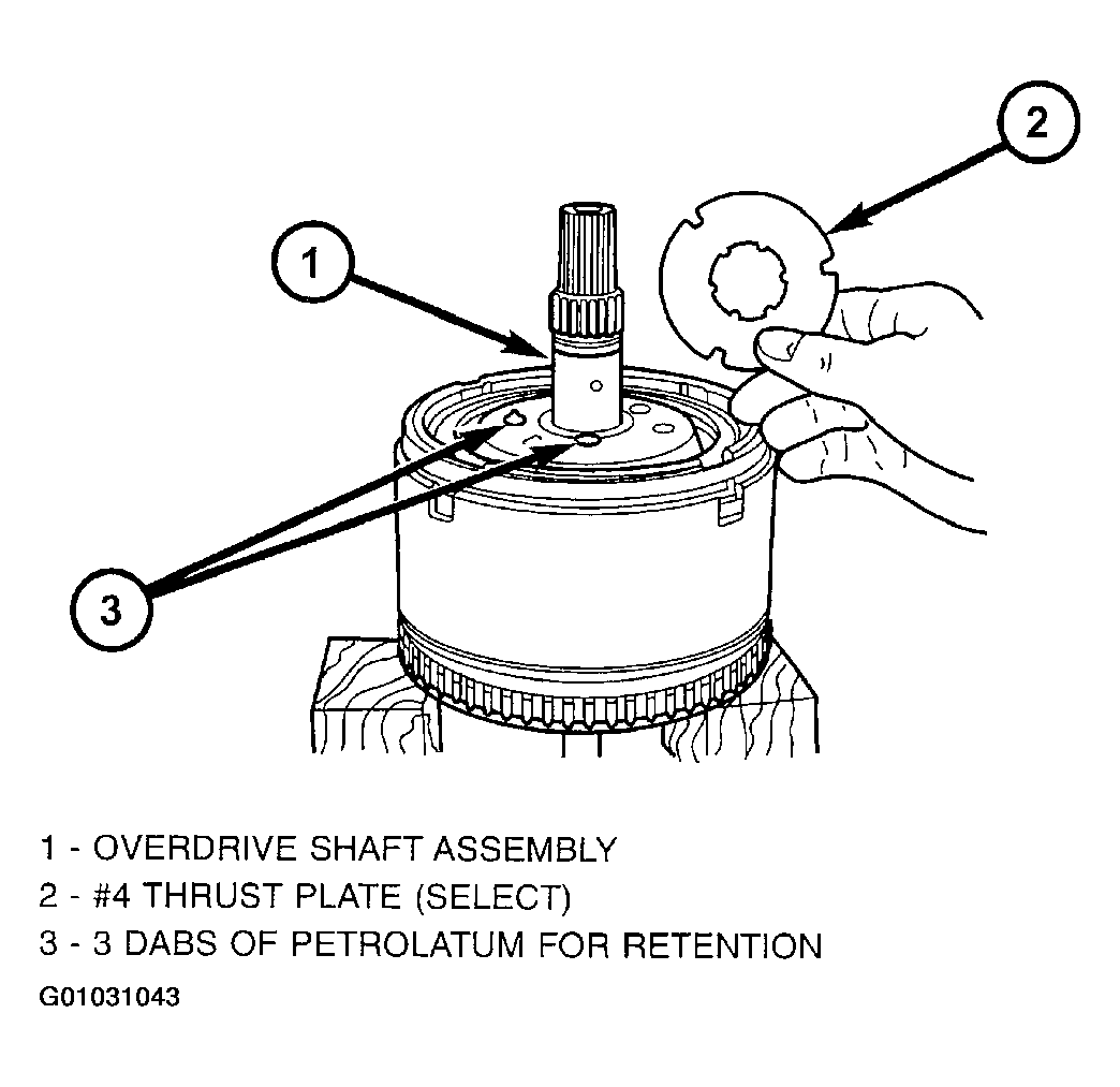 1. Select the thinnest #4 thrust plate thickness and install to input clutch assembly. (Fig 60). Use petrolatum to retain.