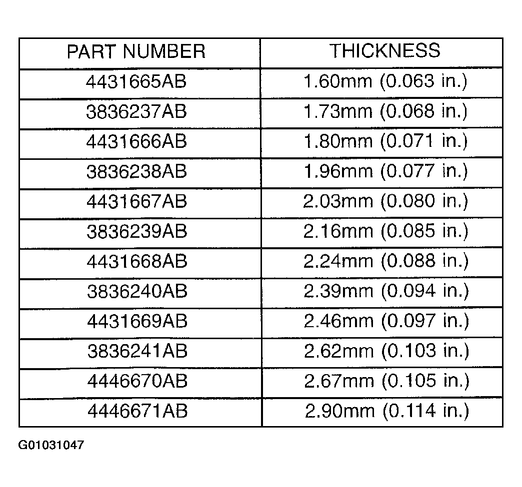 6. Refer to the No. 4 thrust plate chart to select the proper No. 4 thrust plate: