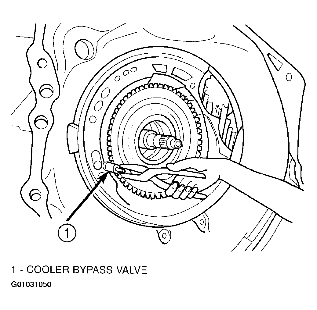 CAUTION: The cooler bypass valve must be replaced if transaxle failure has occurred. DO NOT attempt to reuse or clean old valve.