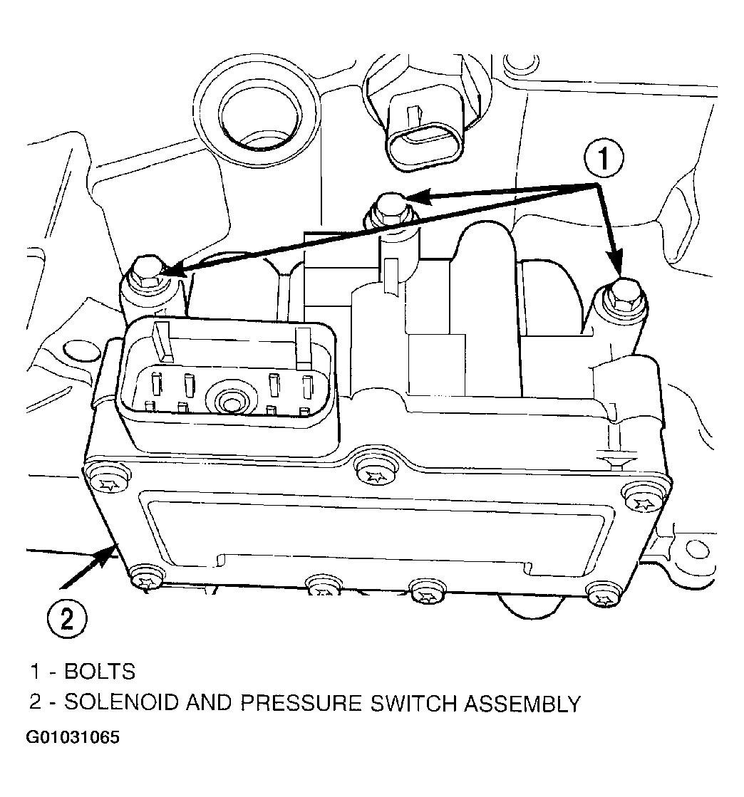 69. Install and tighten solenoid/pressure switch assembly-to-transaxle case bolts to 12 N.m (110 in. lbs.). (Fig 82).