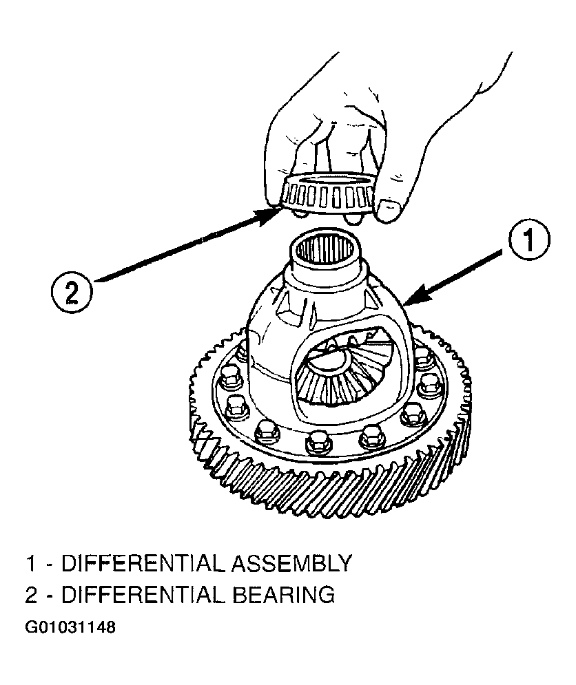 The differential is serviced as an assembly. The only parts that are serviceable within the differential are the differential bearing cups and cones. If any other part fails within the differential, you must replace the differential assembly along with the transfer shaft.