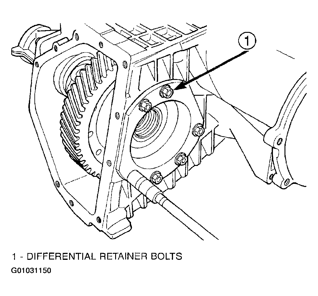 - Install differential assembly to case. Install extension housing/adapter plate and bearing retainer.