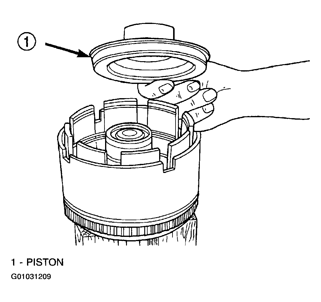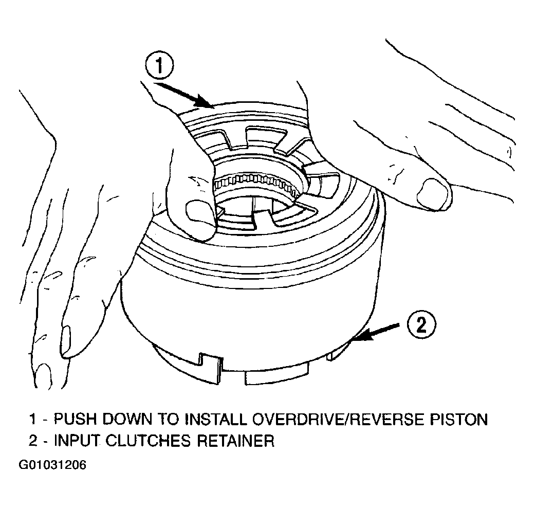 - Install the OD/Reverse piston assembly to the input clutch retainer as shown in (Fig 5).